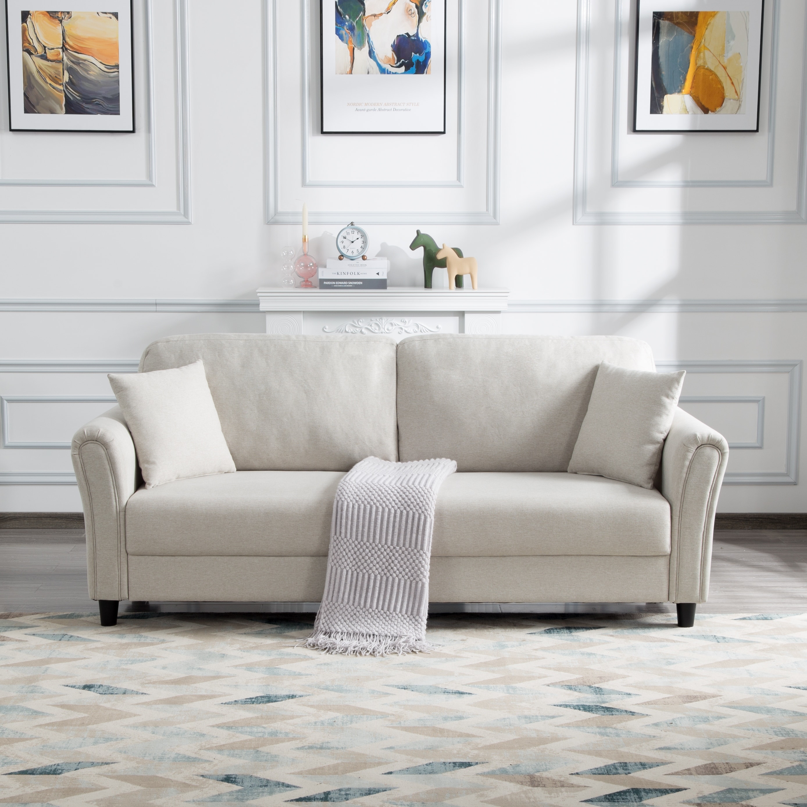 81.5 Inch Linen Fabric Sofa Couch Removable Cushions Rolled Arms - 81.5" x29.5"x 34.4"H