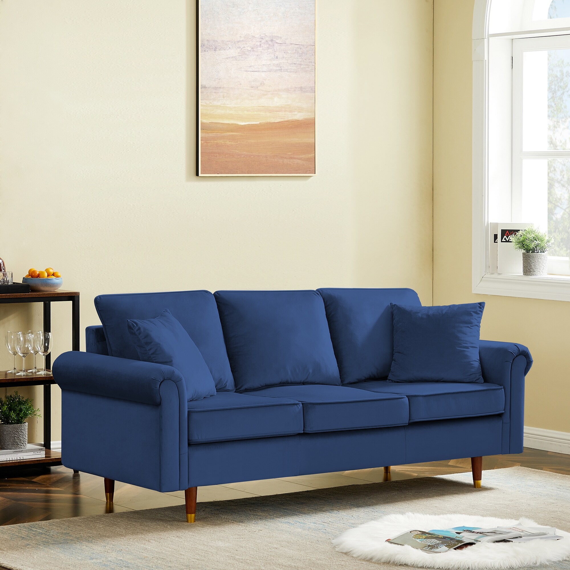 71"W Velvet Fabric Sofa Couch with Pocket