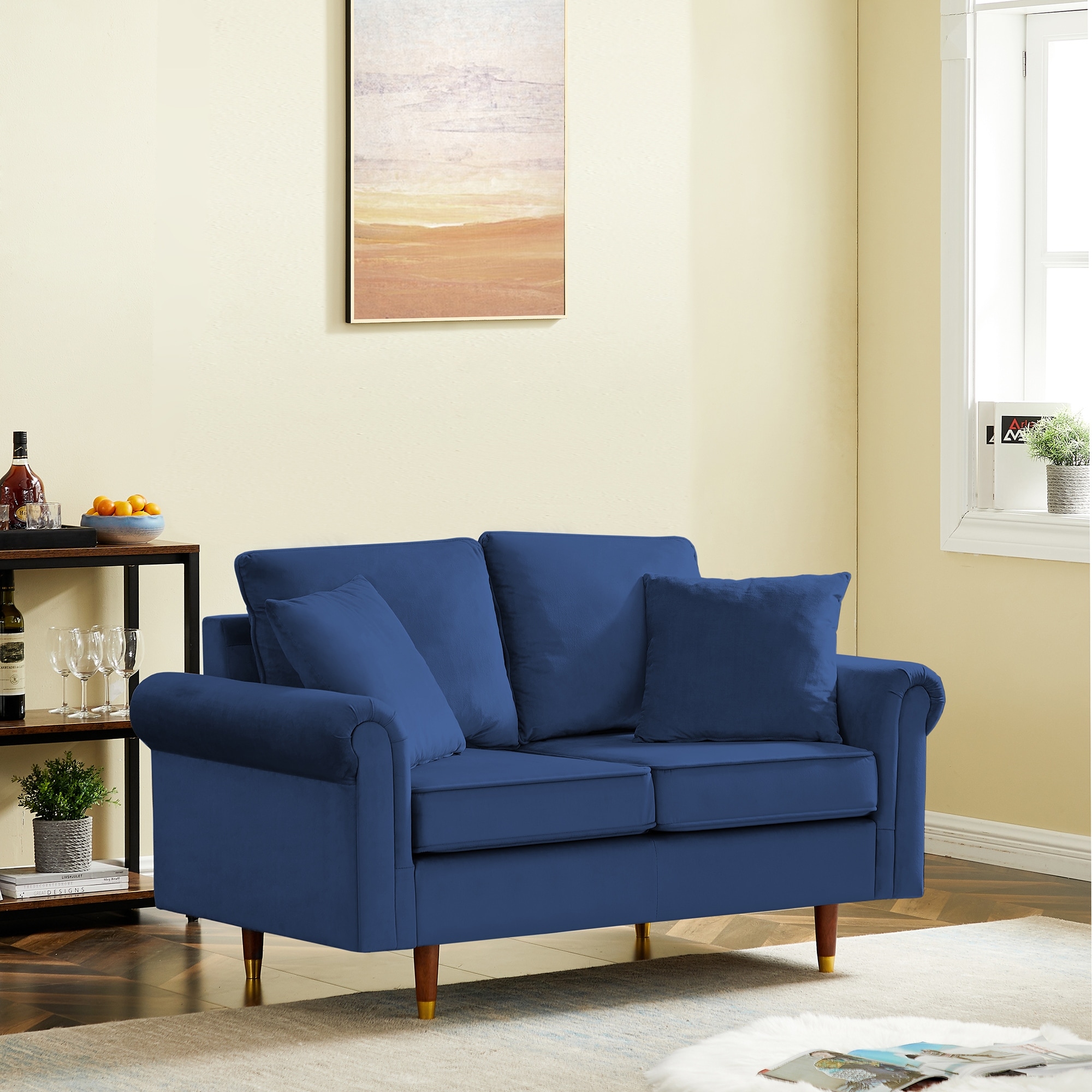 Velvet Sofa Couch with 2 Pillows, Modern Loveseat