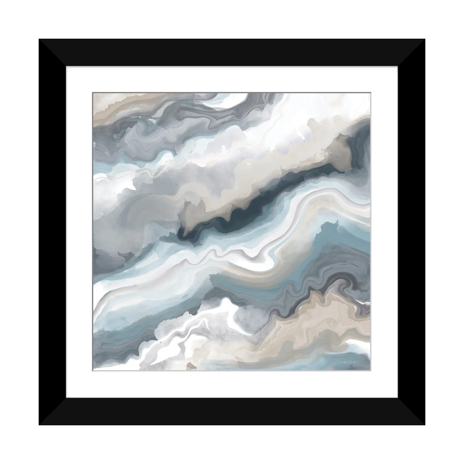 Designart "Create Design White Blue II" Abstract Framed Canvas artwork