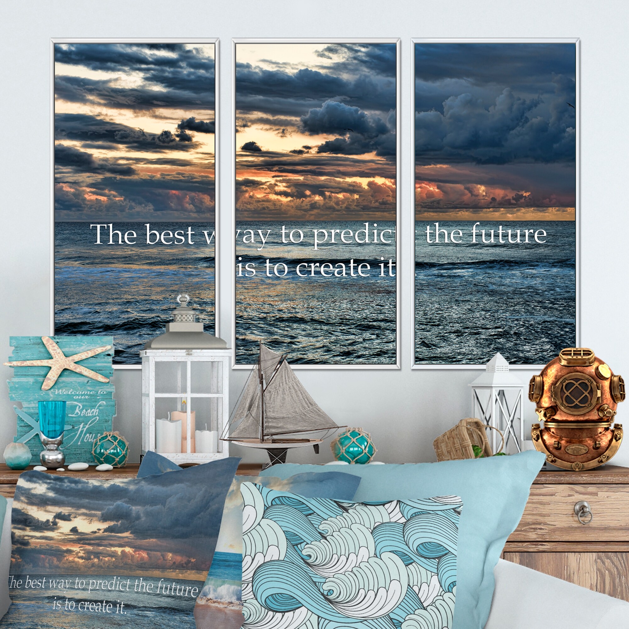 Designart "The Best Way to Predict the Future Is to Create It" Nautical & Coastal Framed Artwork Set of 3 - 4 Colors of Frames