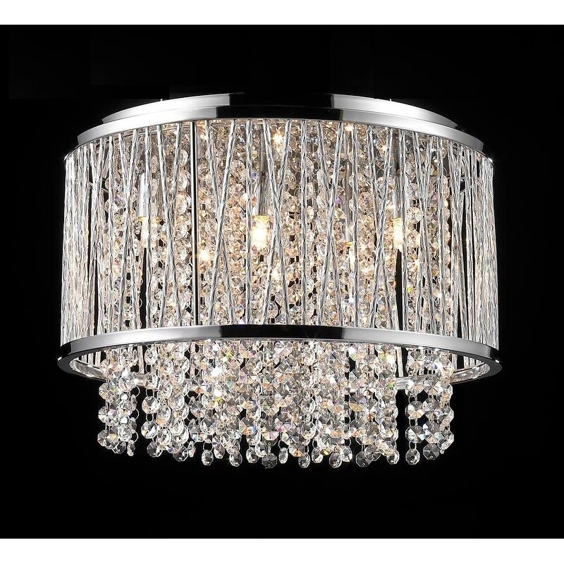 Chrome Metal Flush Mount with Clear Crystals Accents