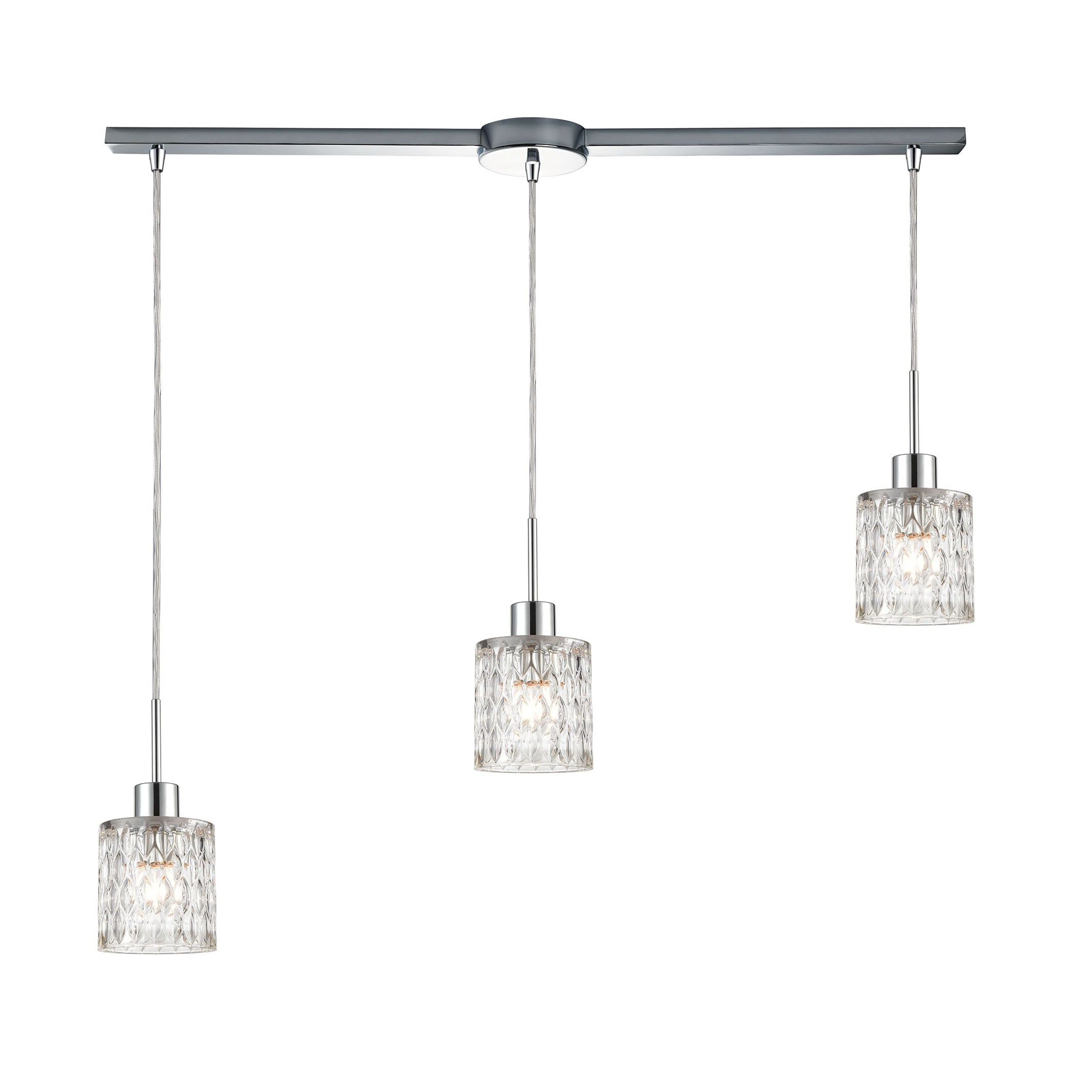 Ezra 3-Light Linear Mini Pendant Fixture in Polished Chrome with Textured Clear Crystal