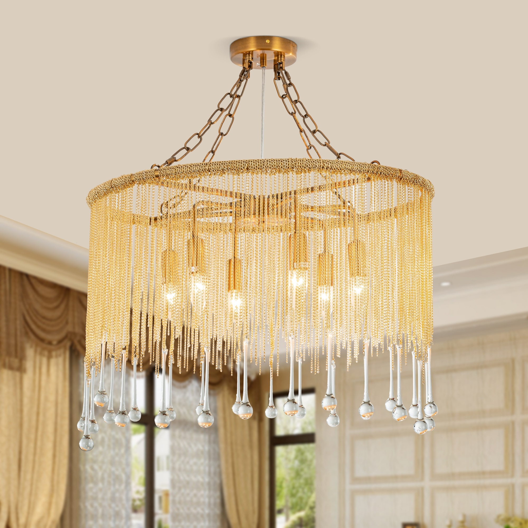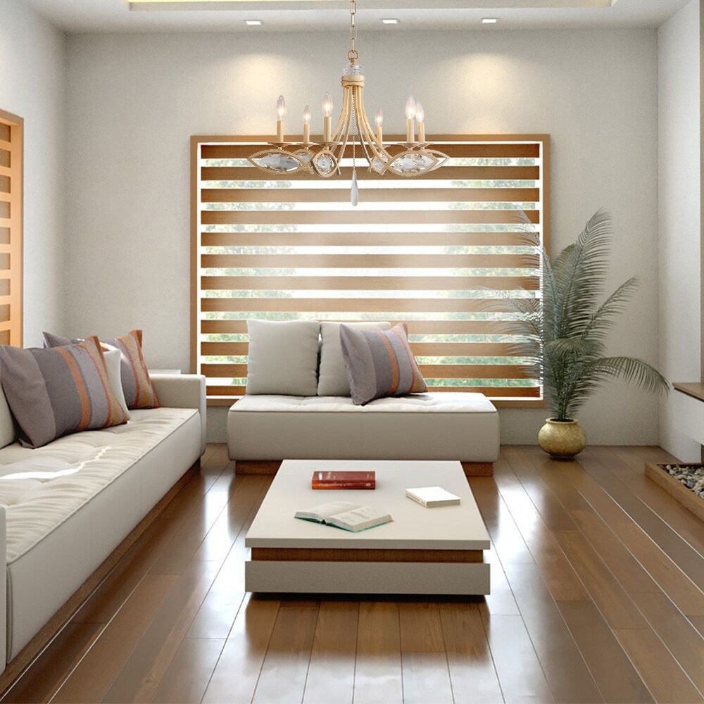 6-Light Brass Contemporary Chandelier with Clear Crystal