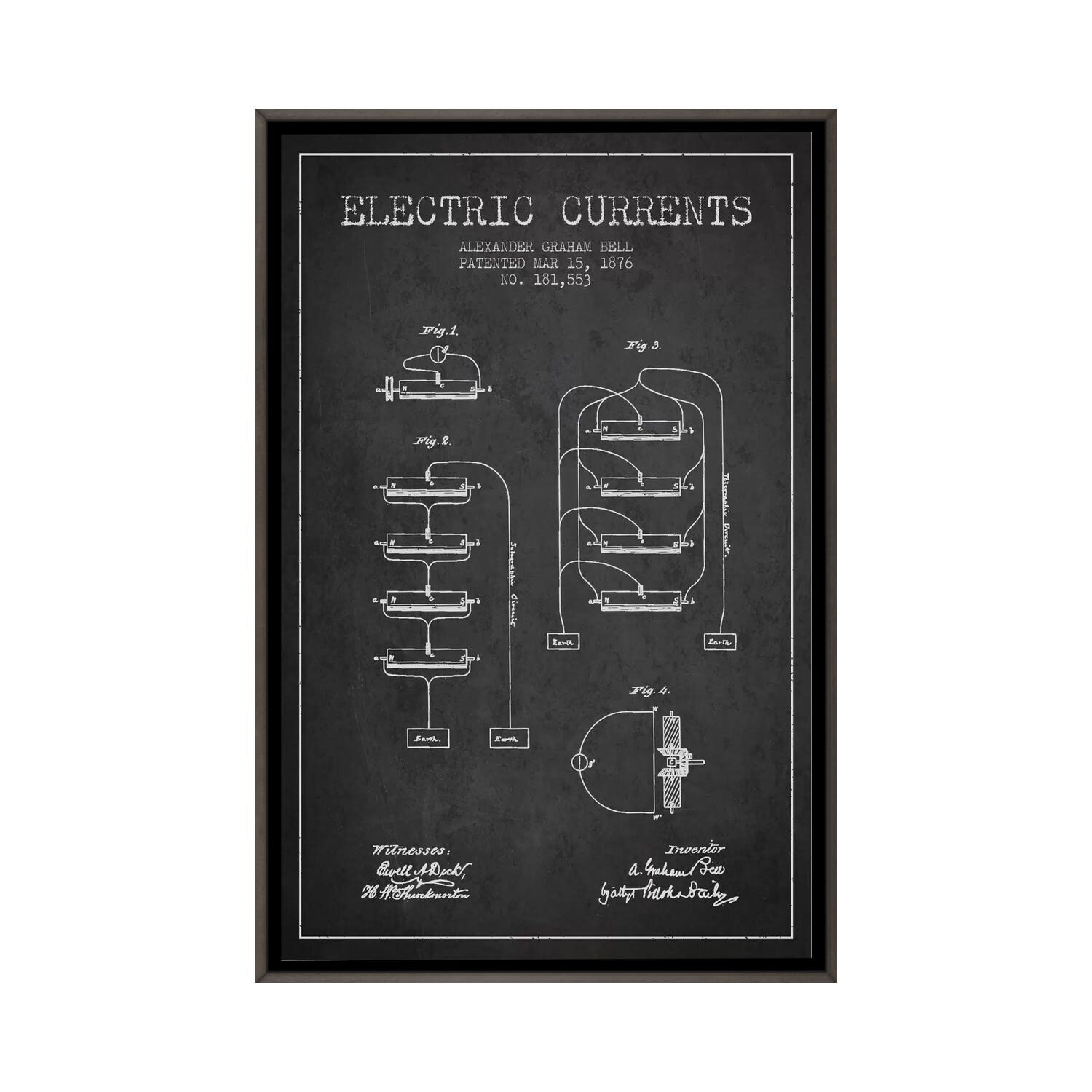 iCanvas "Electric Currents Charcoal Patent Blueprint" by Aged Pixel Framed