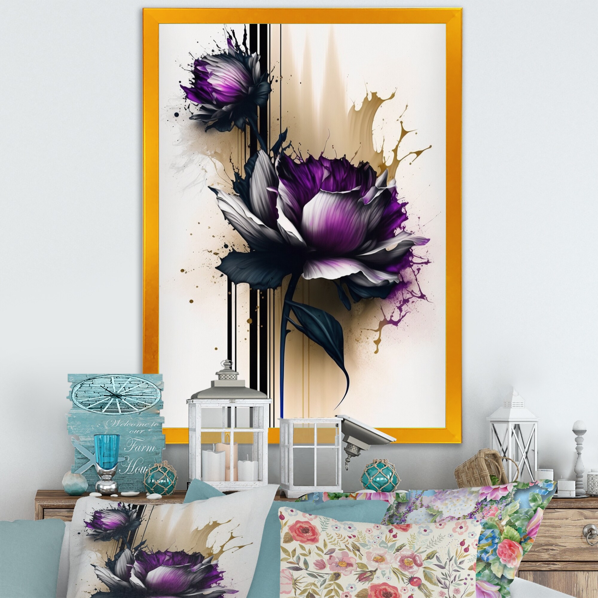 Designart "Purple Dahlia Flower on Abstract Paint II" Floral & Botanical Framed Art Print