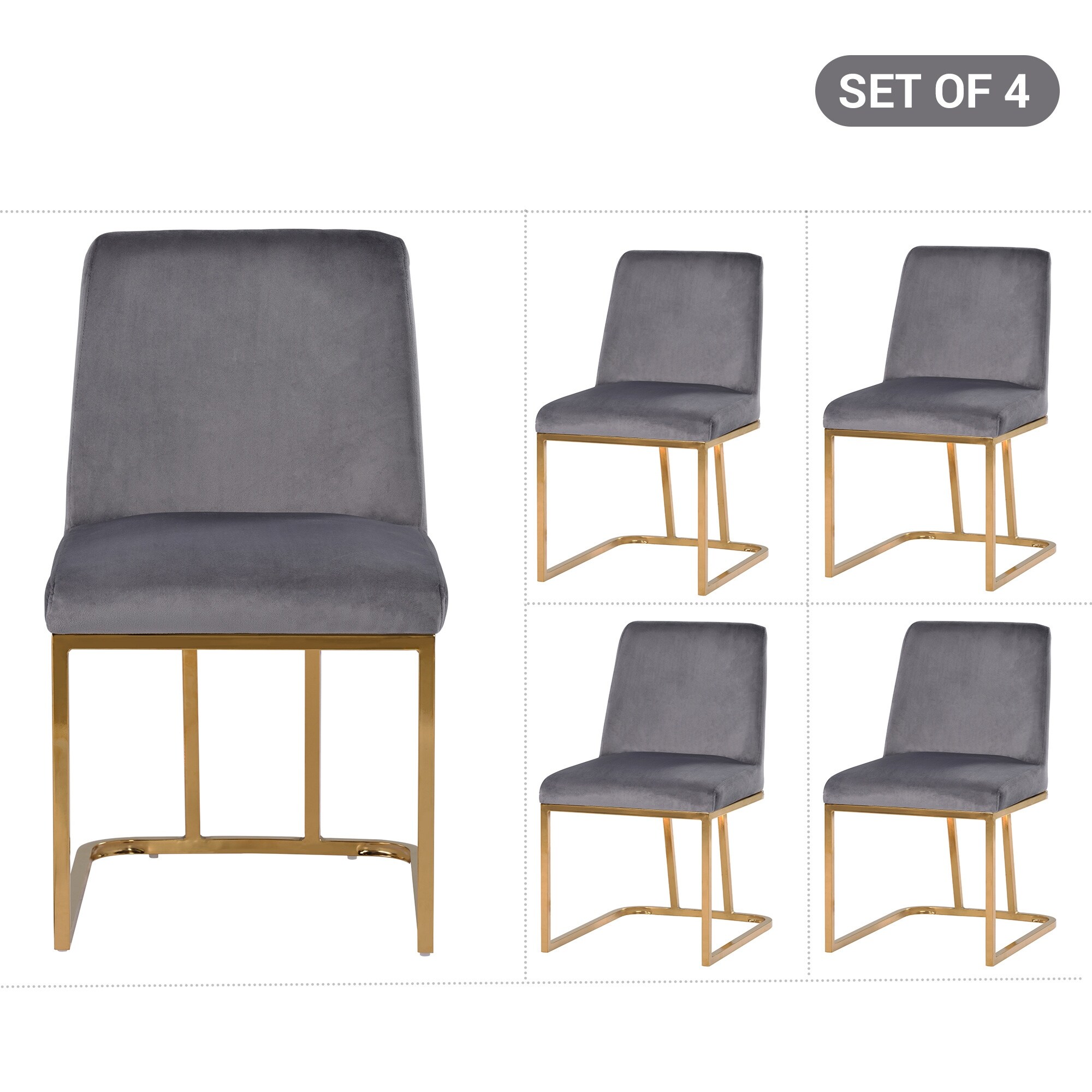 Gold Legs Dining Chairs Finished with Velvet Fabric (2 Piece)