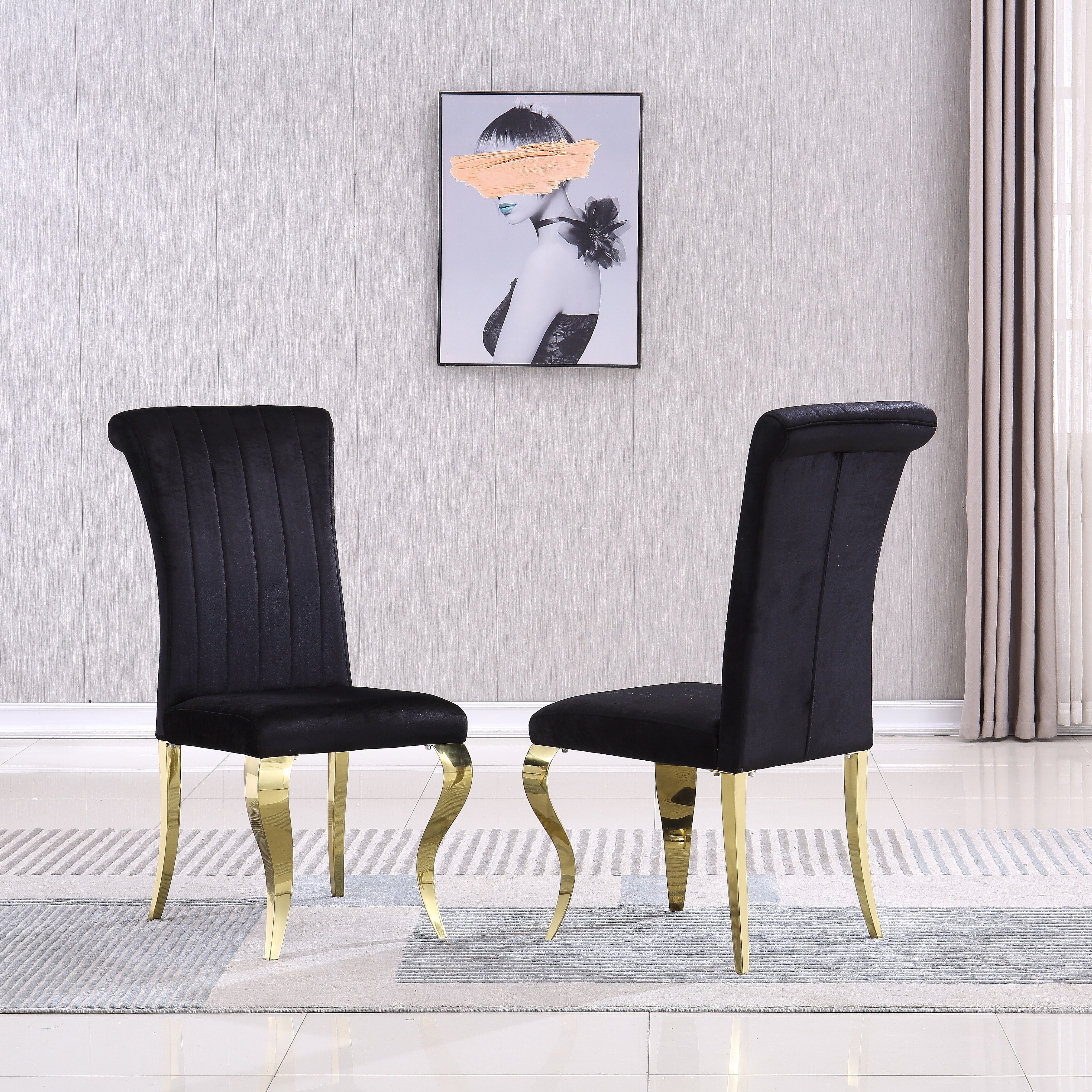 Upholstered Velvet Dining Chairs with Stripe Backrest