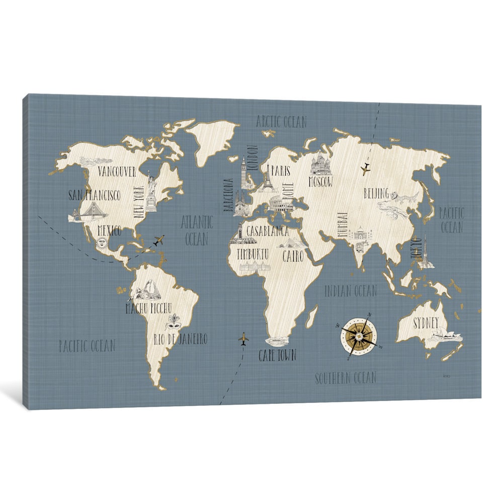 iCanvas Doodles Map by Veronique Charron Canvas Print