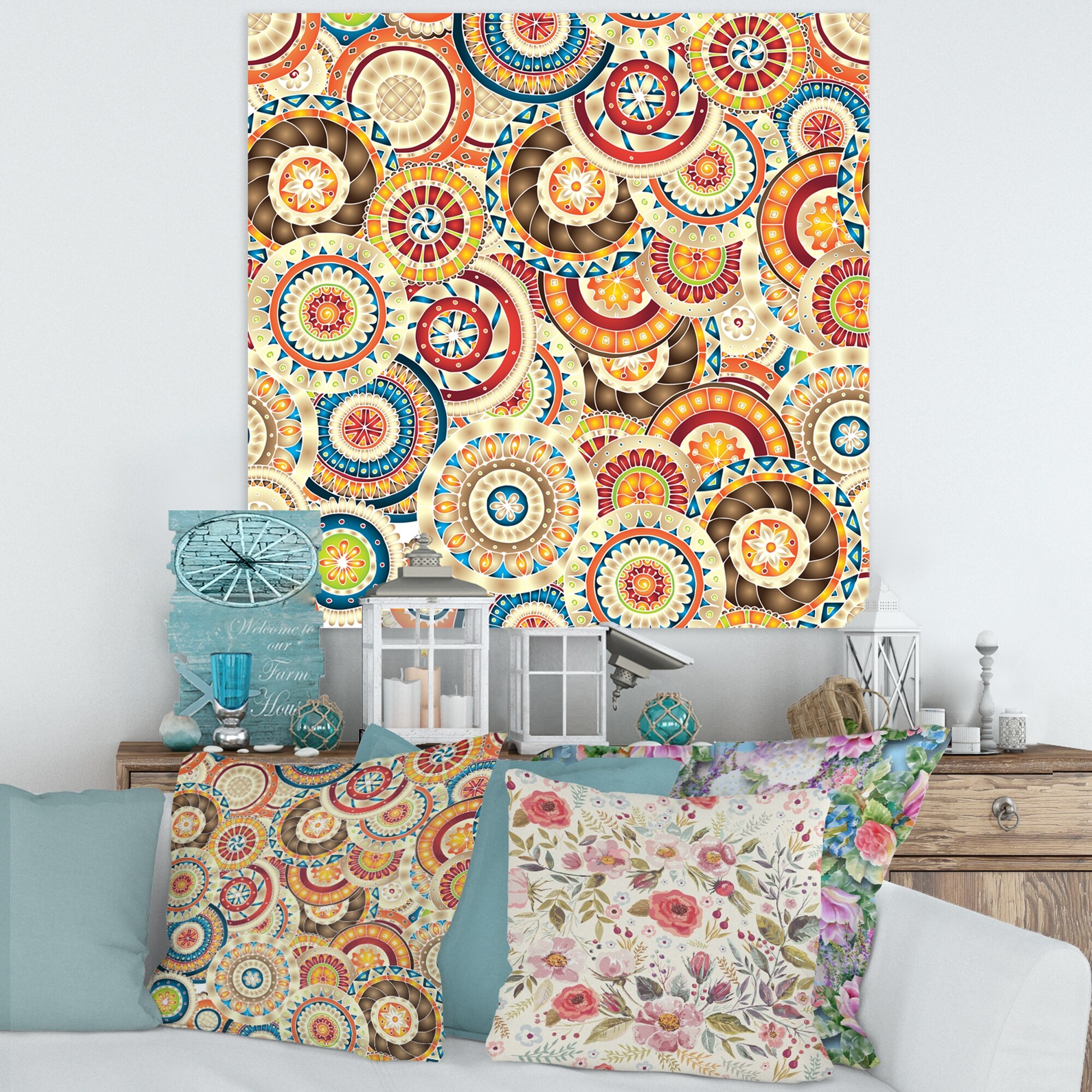 Designart "Circular Sixties Doodles in Retro Colors" Bohemian Canvas Wall Art Print