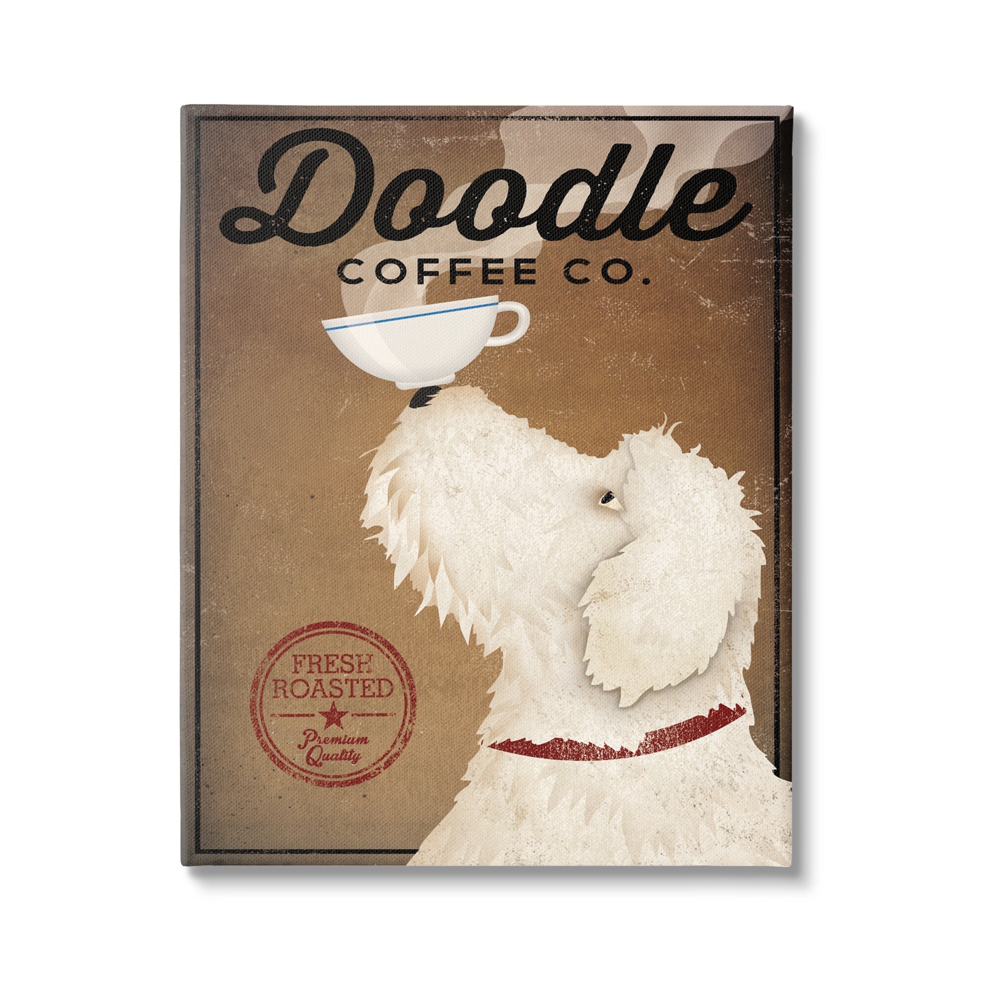 Stupell Industries Vintage Doodle Coffee Dog Sign Stretched Canvas Wall Art, Design by Ryan Fowler
