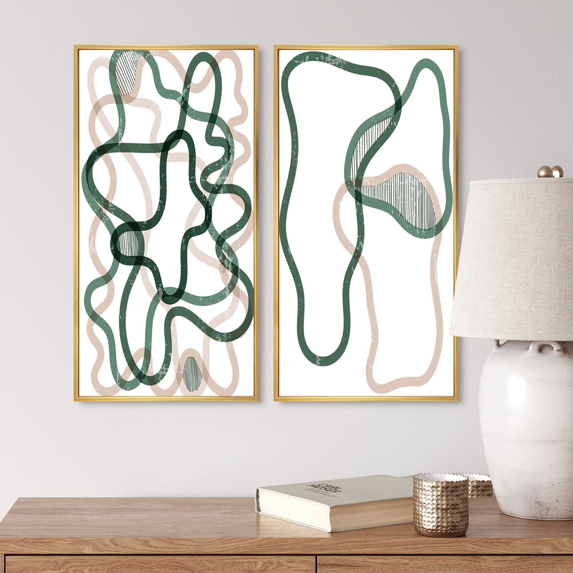 Designart "Minimalistic Vintage Doodles in Shades of Blue I" Geometric Framed Art Set of 2 Pieces