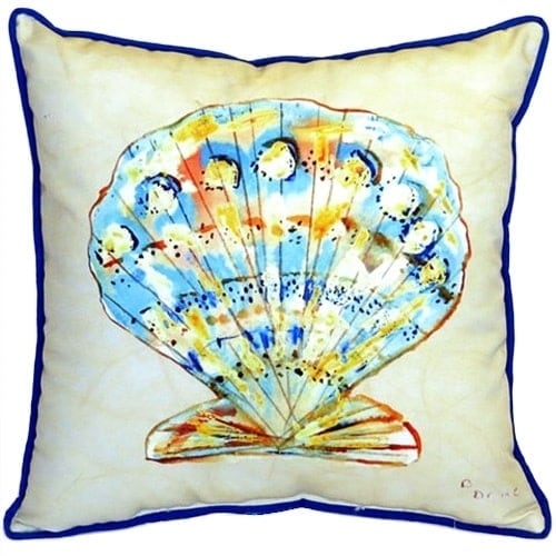 Betsy Drake Teal Scallop Multicolor Polyester 18-inch x 18-inch Indoor/Outdoor Throw Pillow