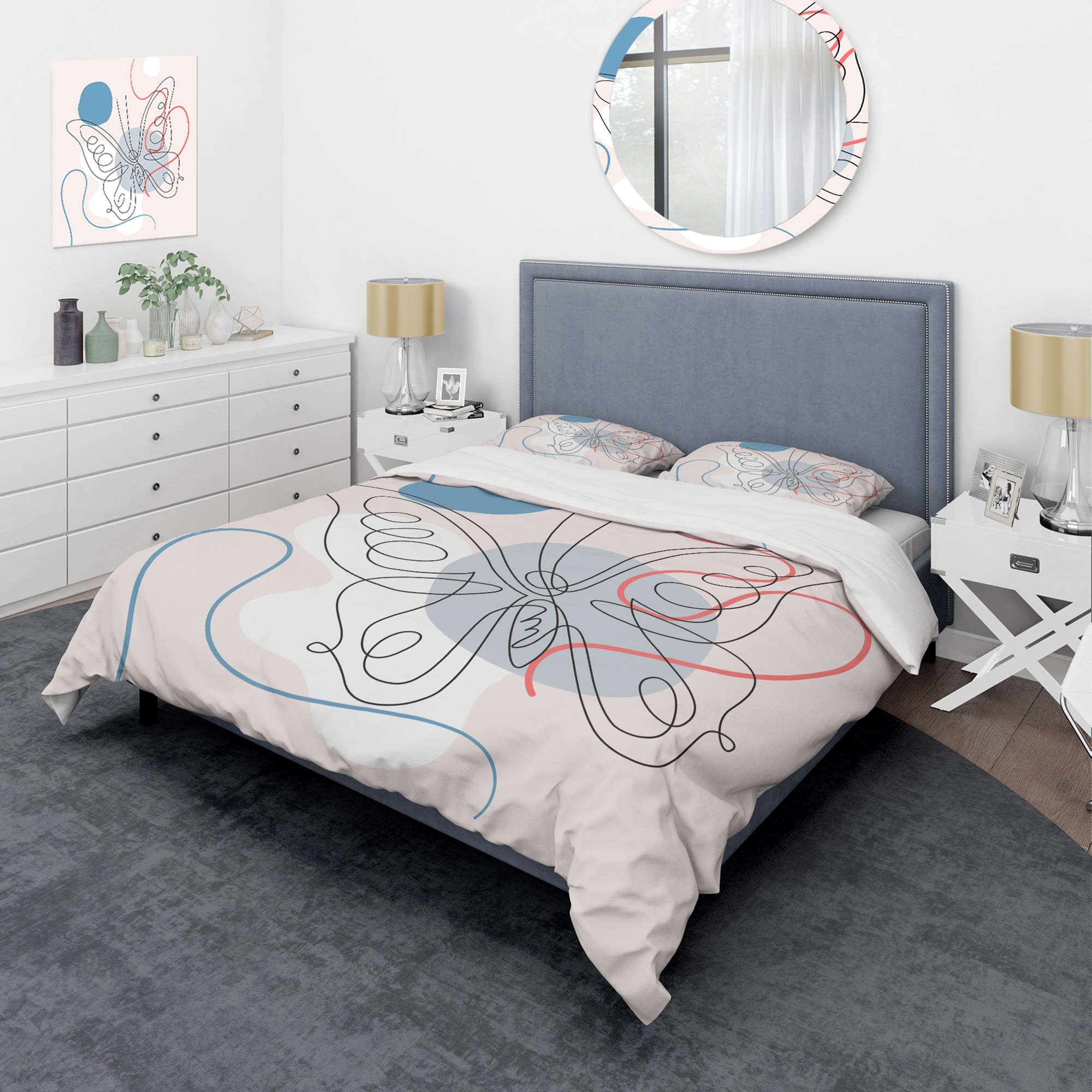Designart 'Butterfly One Line Drawing on Cubism Shapes III' Modern Duvet Cover Set