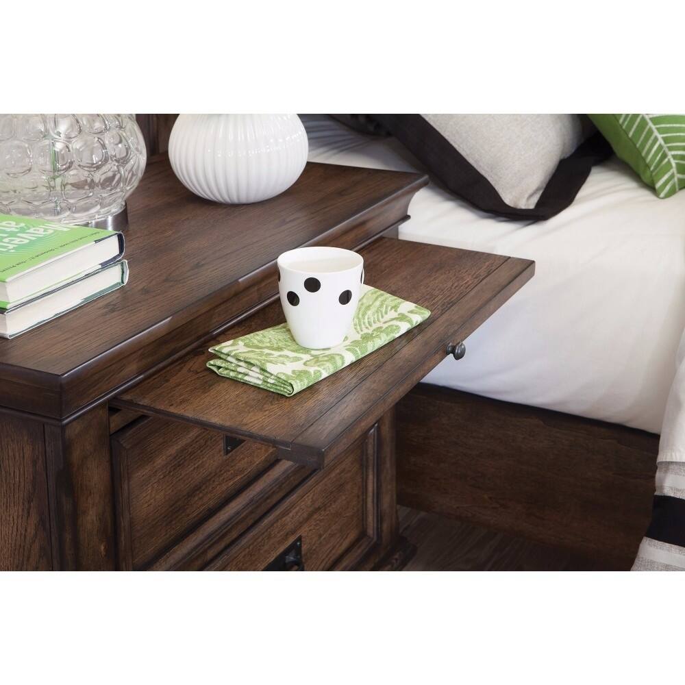 Wooden 2 Drawer Nightstand, Burnished Oak Brown
