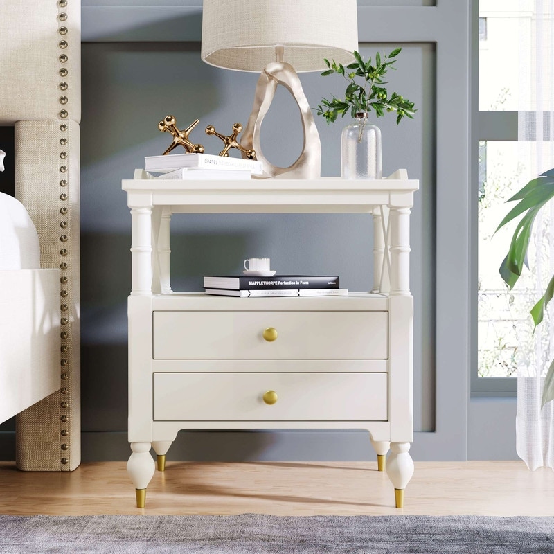 Mid-Century Modern 2 Drawer Nightstand in Off White