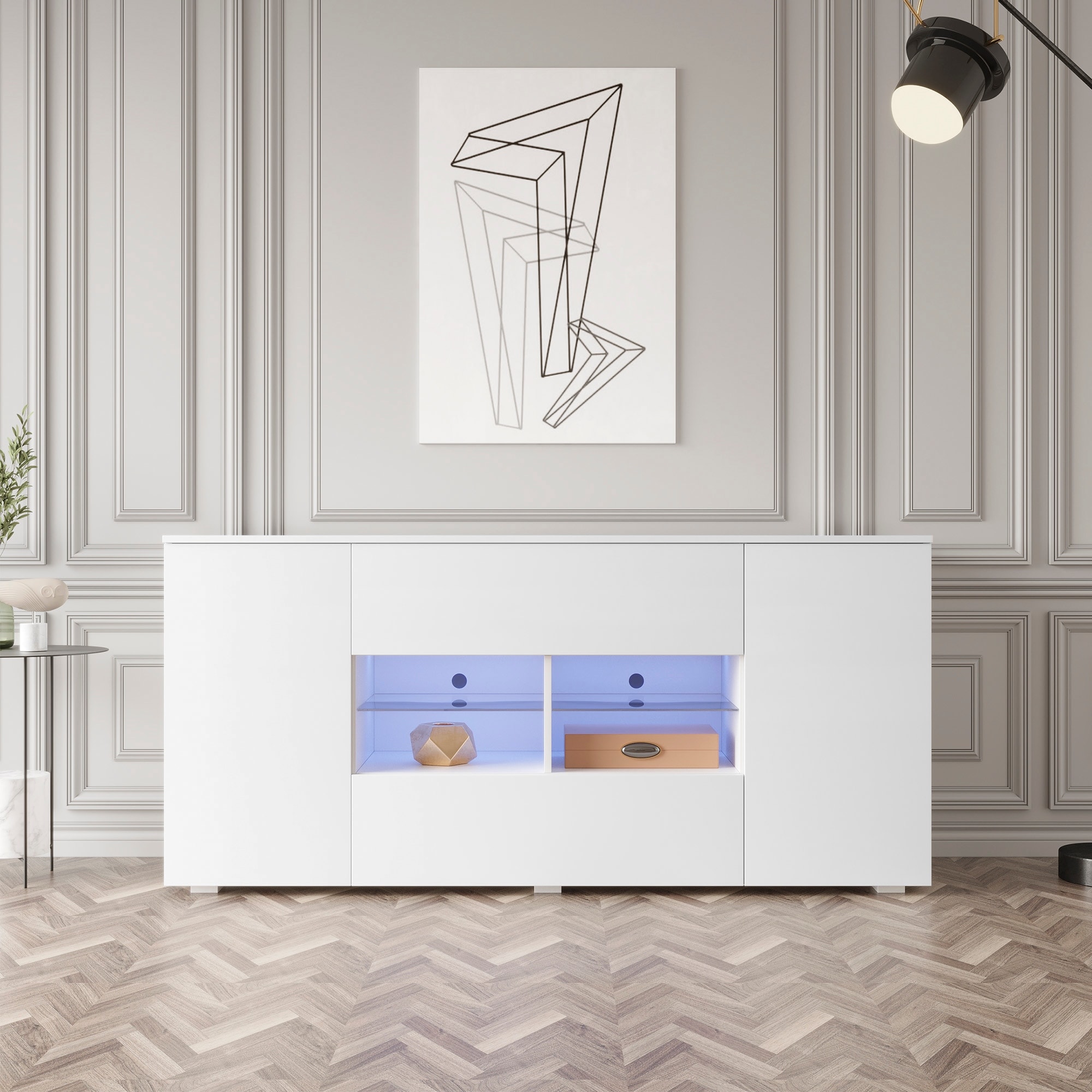 48.8" Sideboard with 2 Glass Door Cabinet 3 Drawer