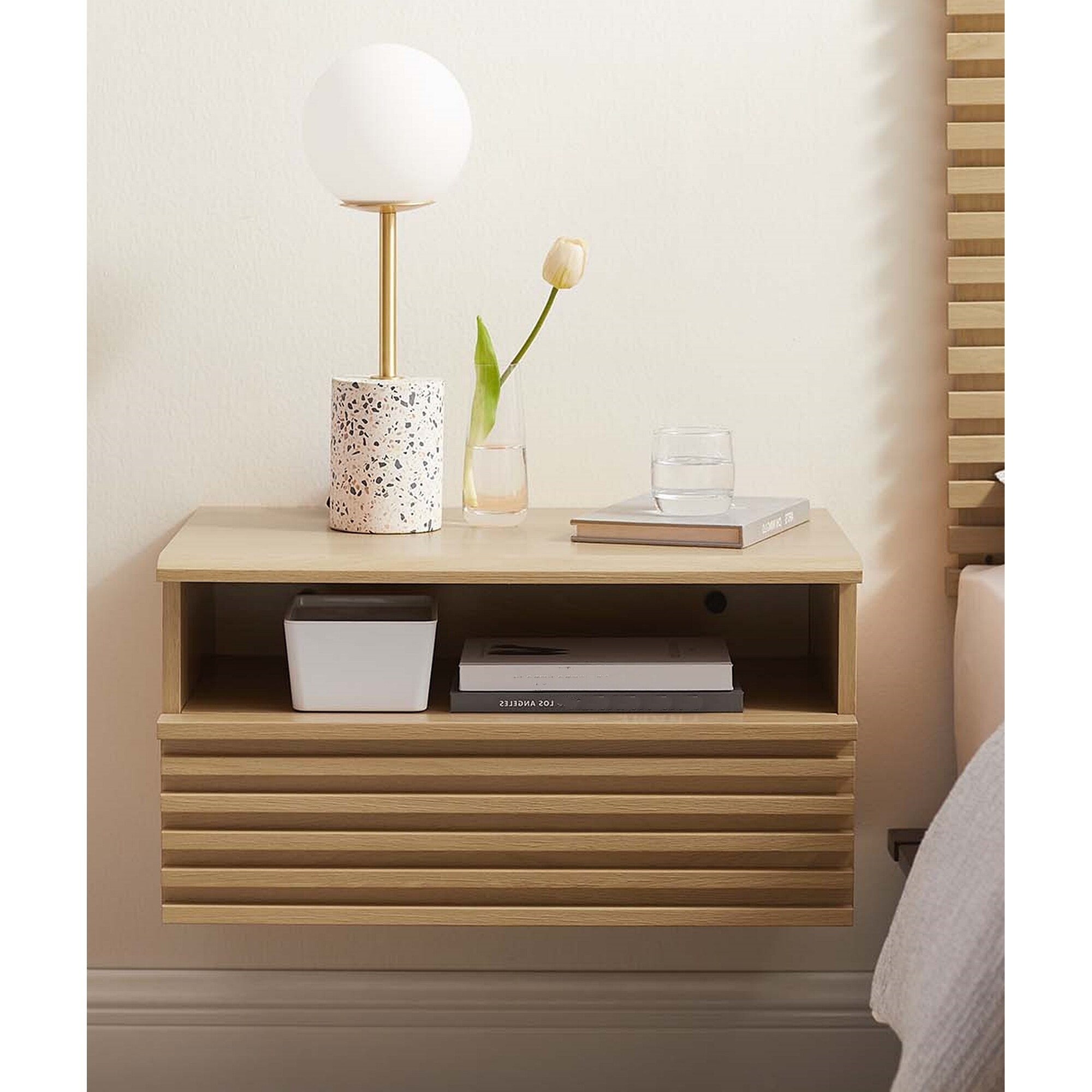 Vidalia Mid-century Modern Oak Wooden Floating Single Drawer Nightstand