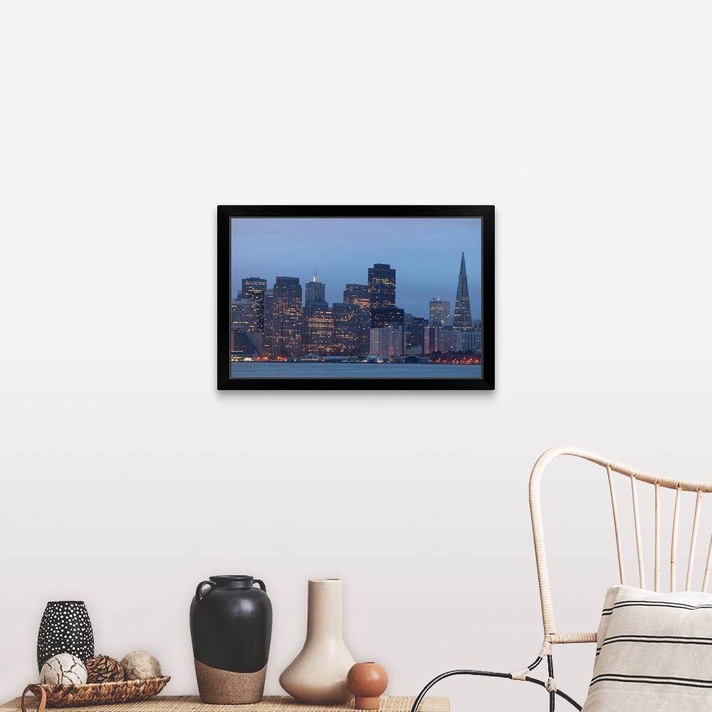 "USA, California, San Francisco city skyline, dusk" Black Framed Print