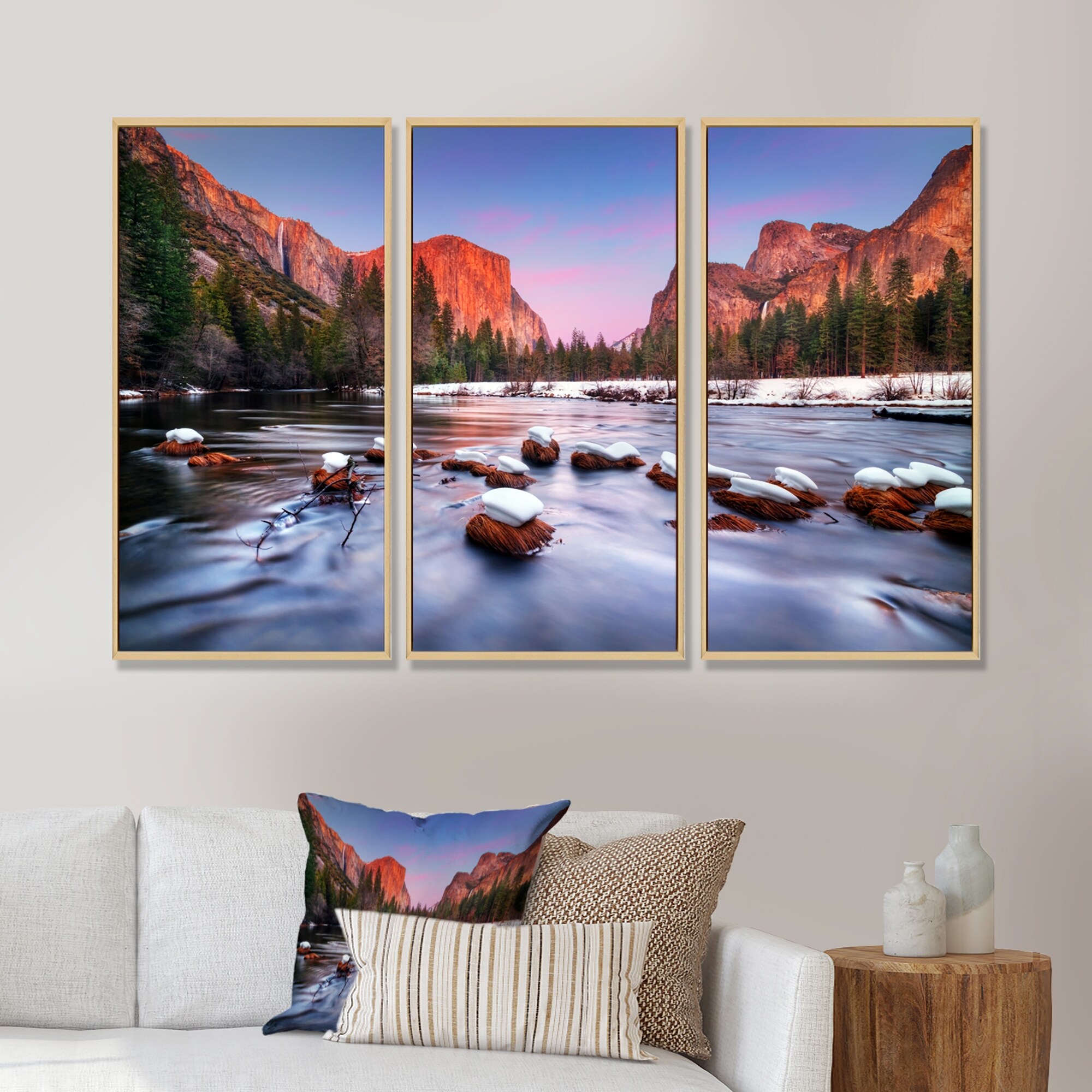 Designart "Yosemite Valley at Dusk" Landscape Framed Wall Decor Set of 3 - 4 Colors of Frames