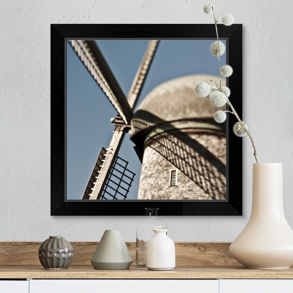 Designart "Dutch Windmills and Garden" Abstract Framed Canvas Wall Art