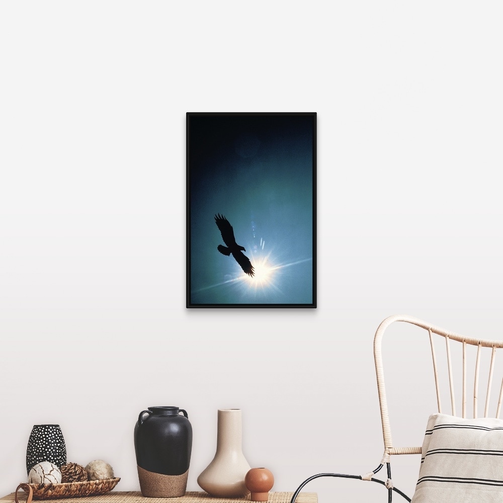 "Silhouette of bald eagle flying in sky" Black Float Frame Canvas Art