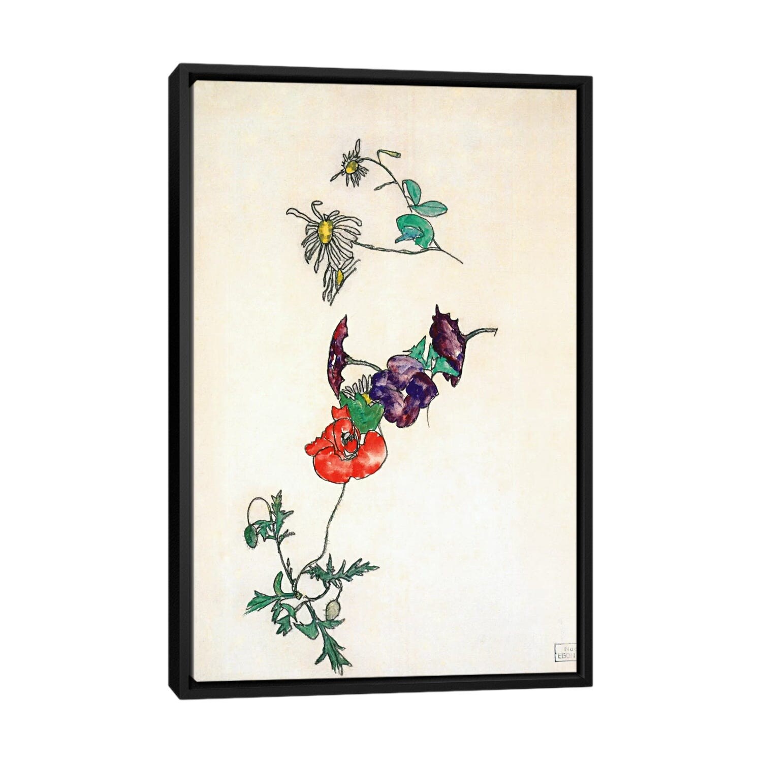iCanvas "Daisies, Poppy and Winding" by Egon Schiele Framed Canvas Print