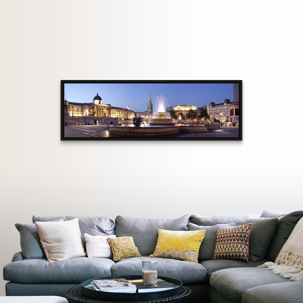 "Trafalgar Square and National Gallery, London, England" Black Float Frame Canvas Art