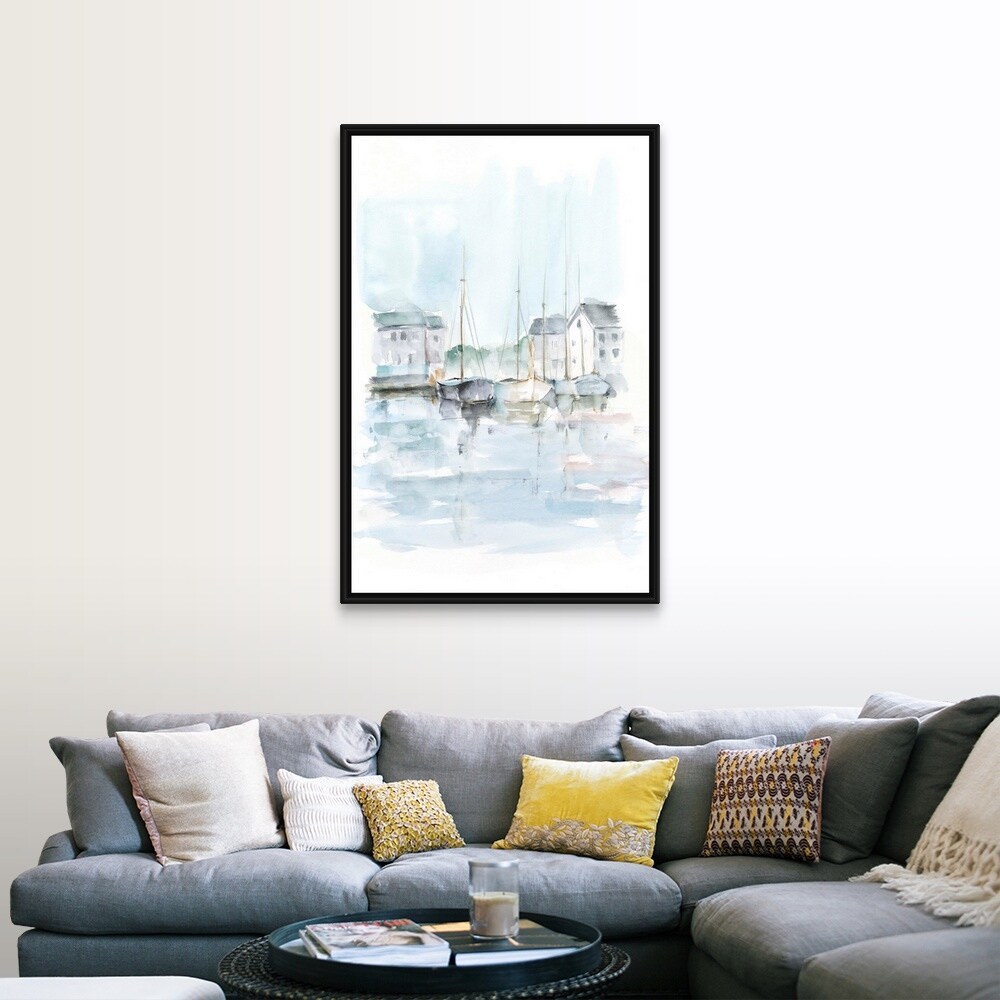 "New England Port II" Black Float Frame Canvas Art
