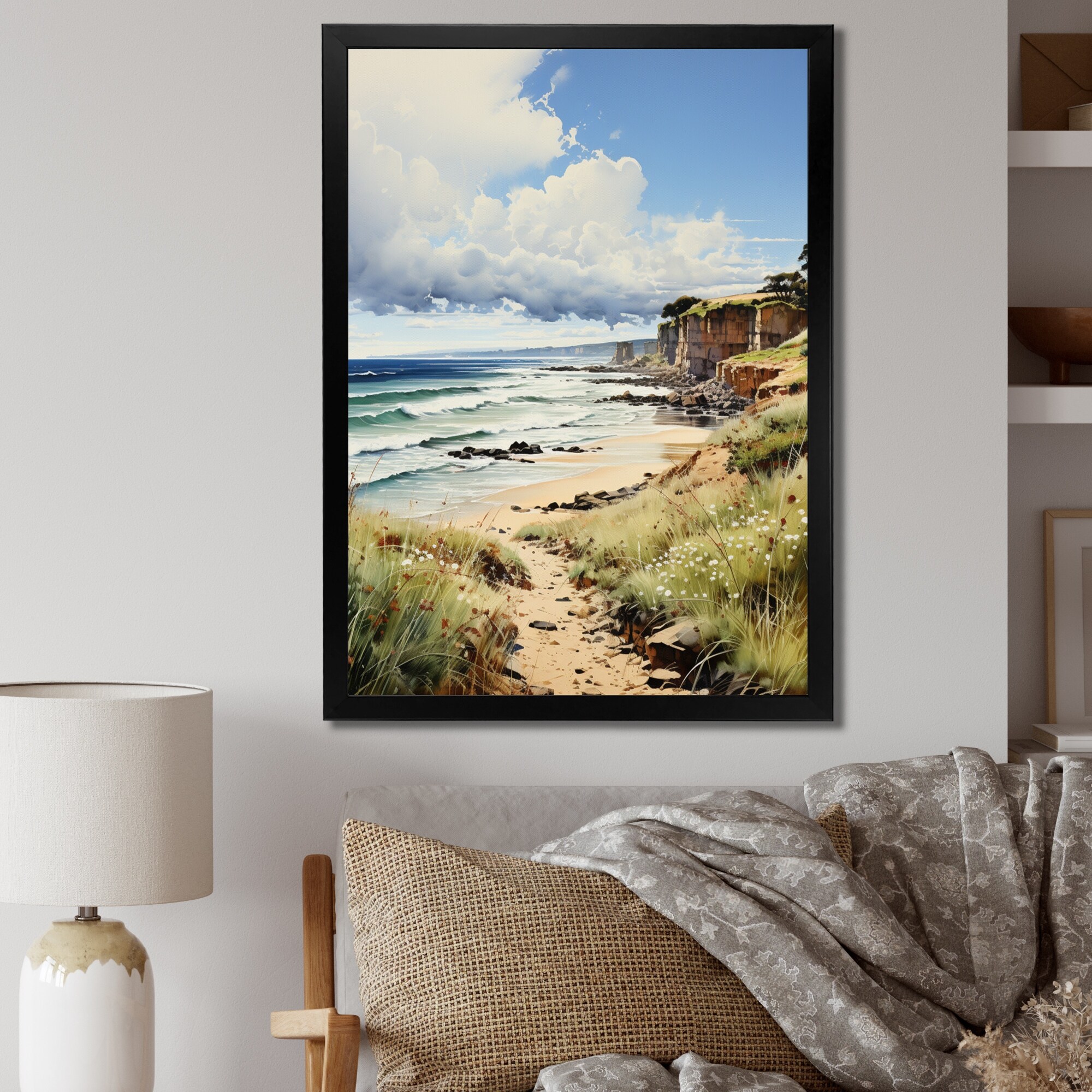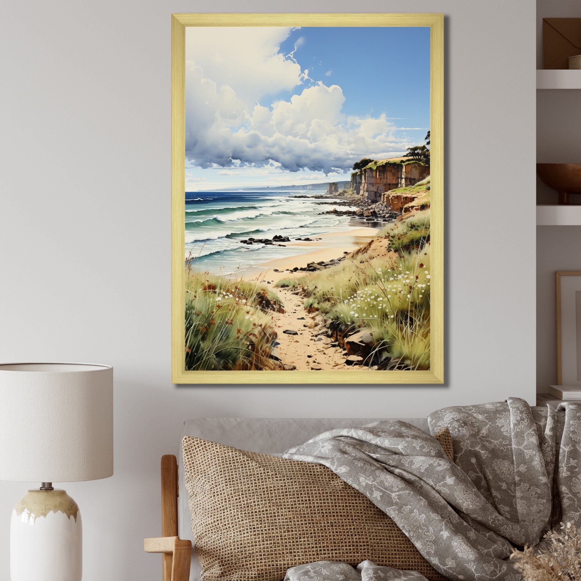 Designart "England Coastal Serenityengland Landscape IV" England Framed Canvas Print