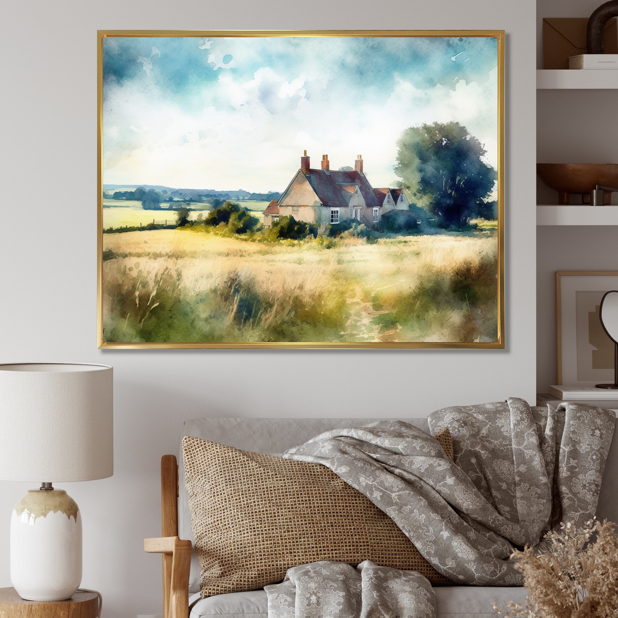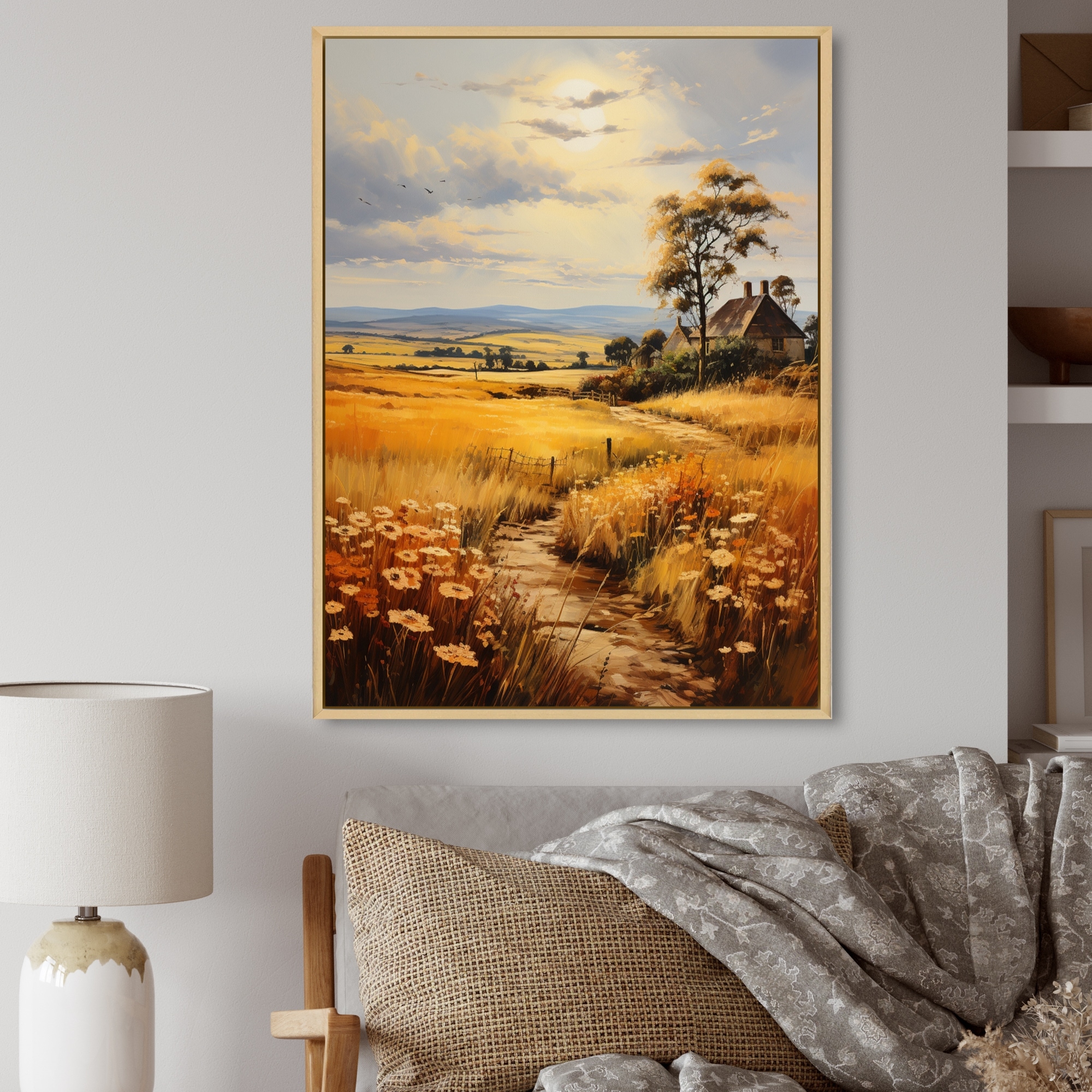 Designart "England Golden Fieldsengland Landscape" England Framed Canvas Wall Art