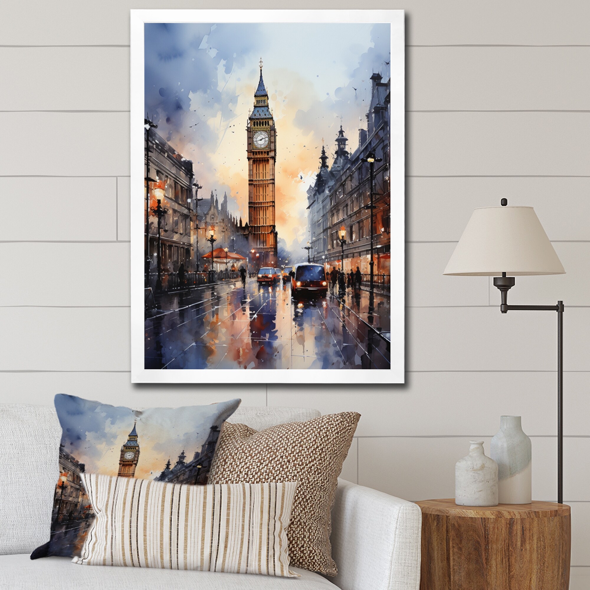 Designart "England City Skylineengland Landscape V" England Framed Canvas Wall Art