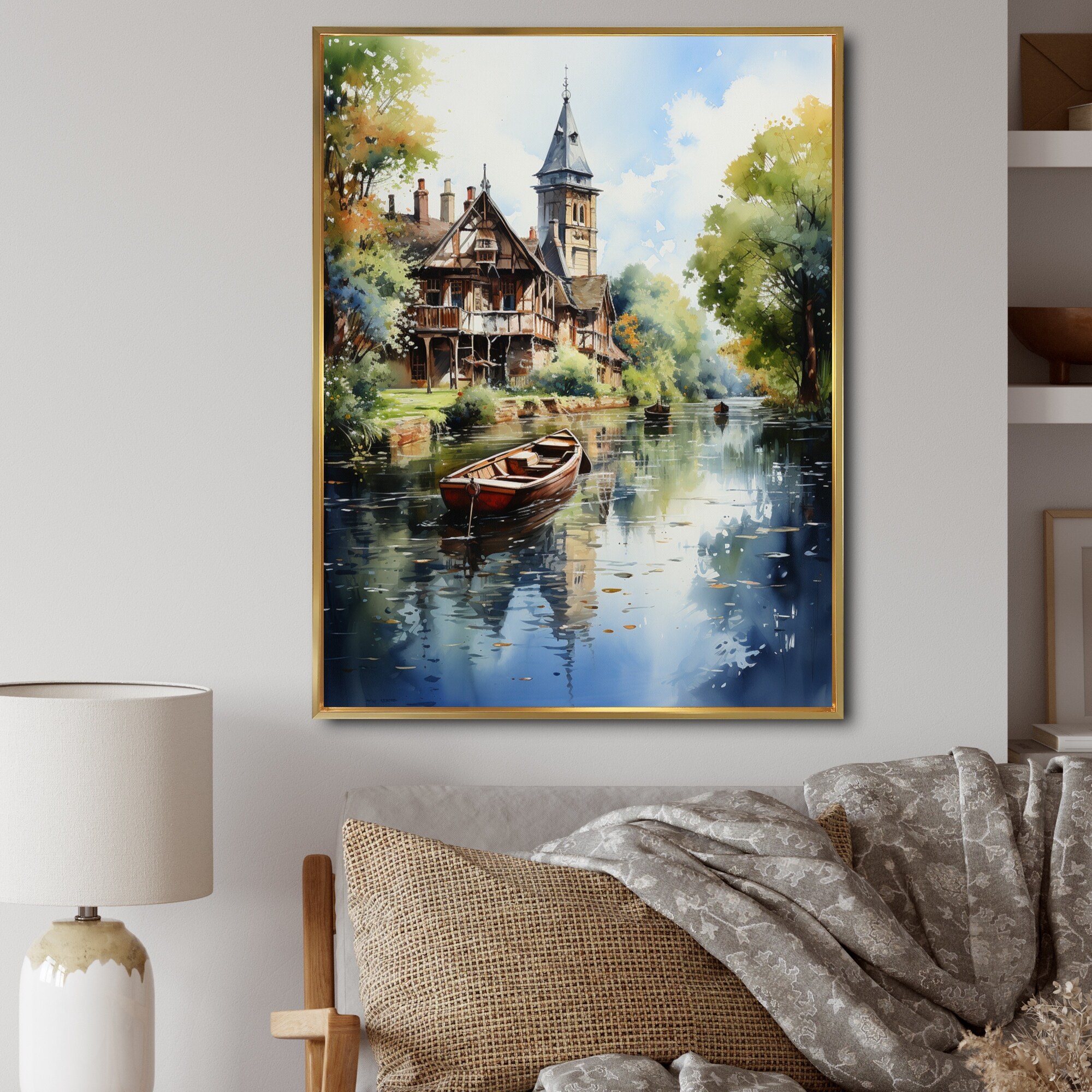 Designart "England Peaceful Canalengland Landscape I" England Framed Canvas Prints