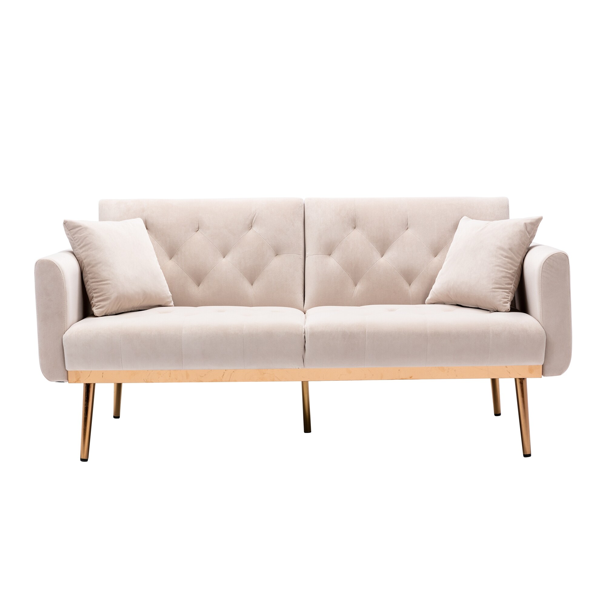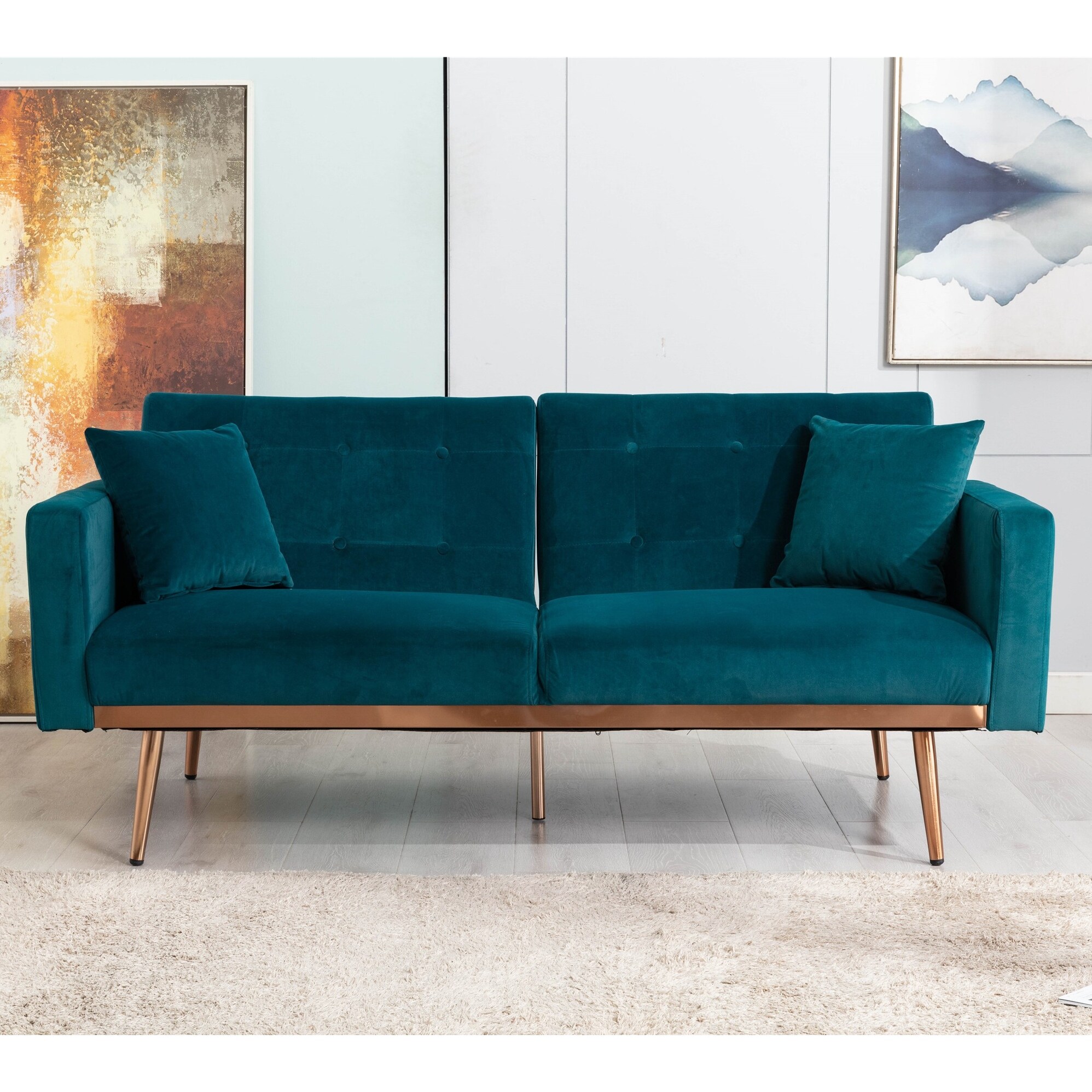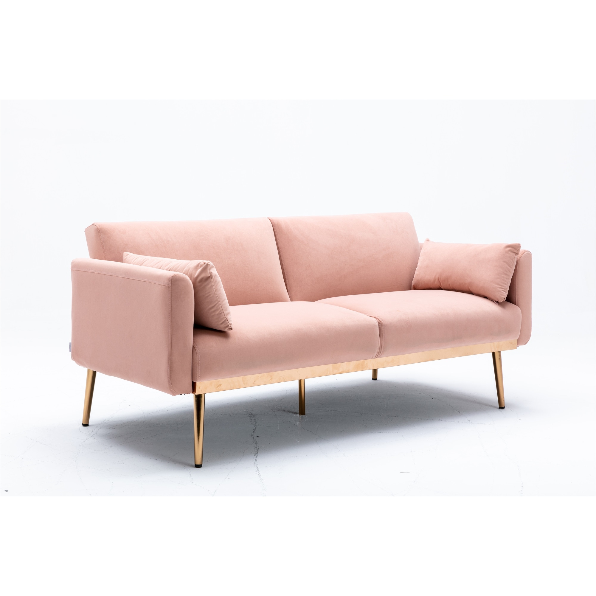 Modern Loveseat Sofa Accent Sofa, Comfort Velvet Convertible Futon Sofa & Sofa Bed with Metal Feet and Adjustable Backrest