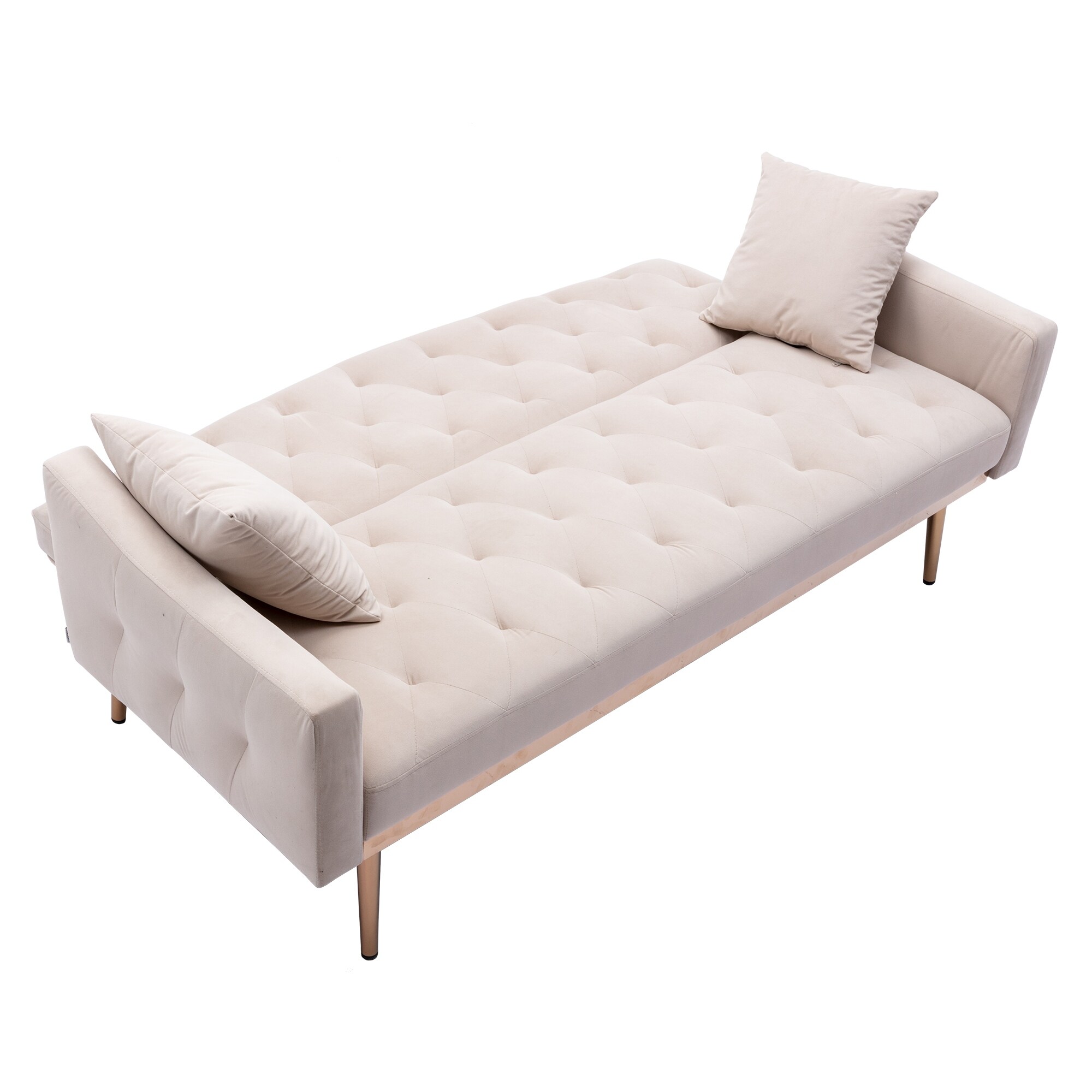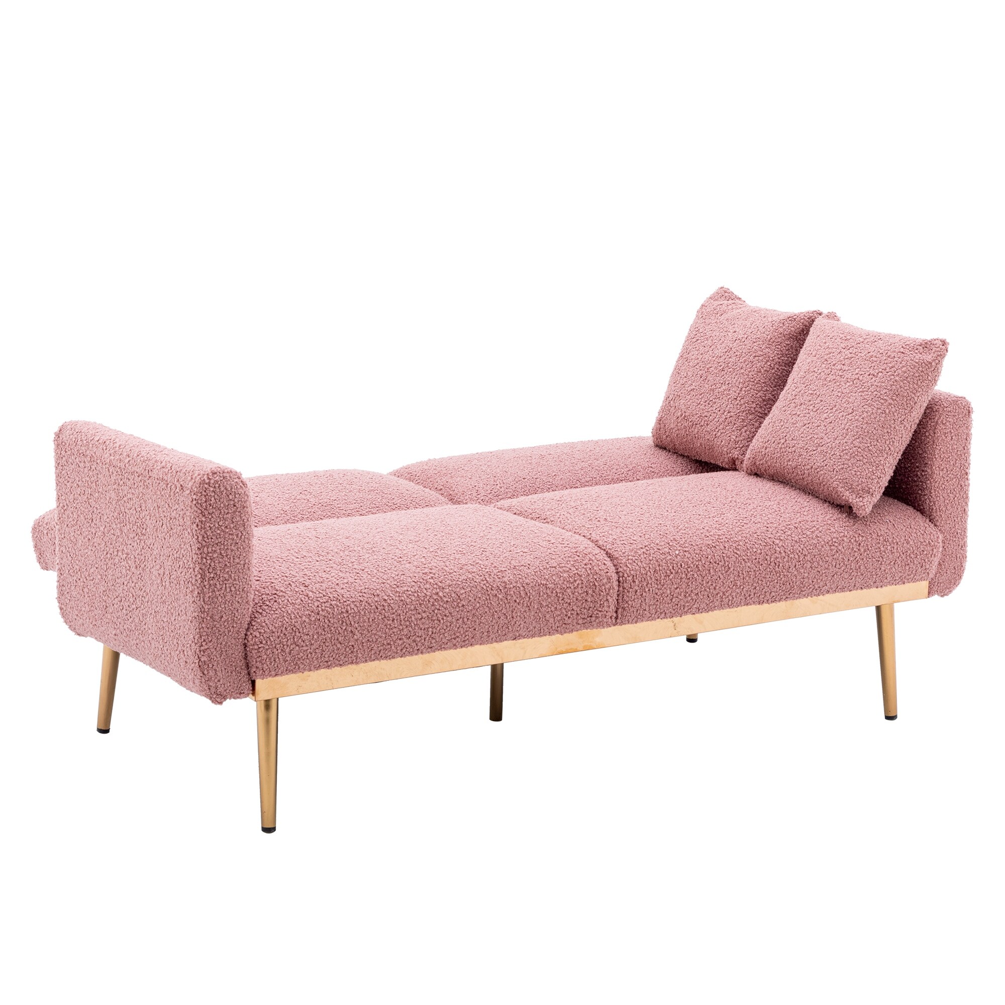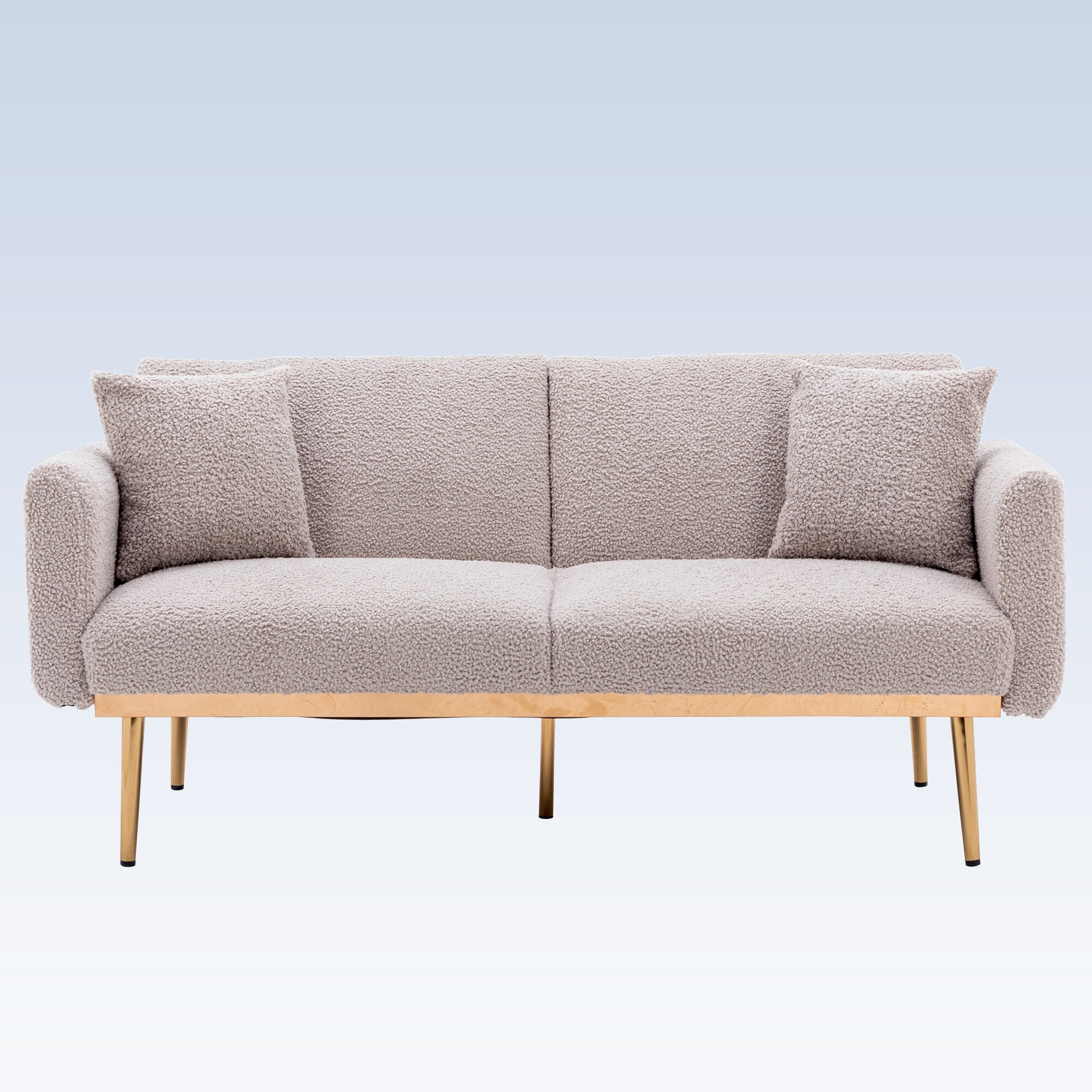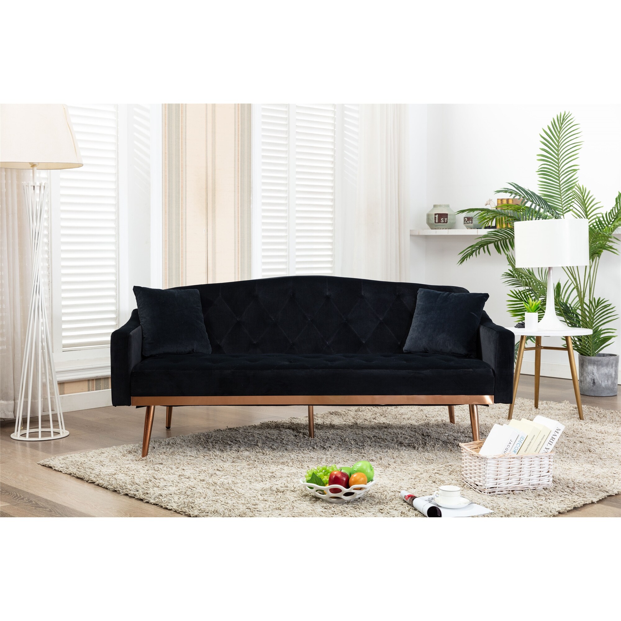 Modern Loveseat Sofa Accent Sofa, Comfort Velvet Convertible Futon Sofa & Sofa Bed with Metal Feet and Adjustable Backrest