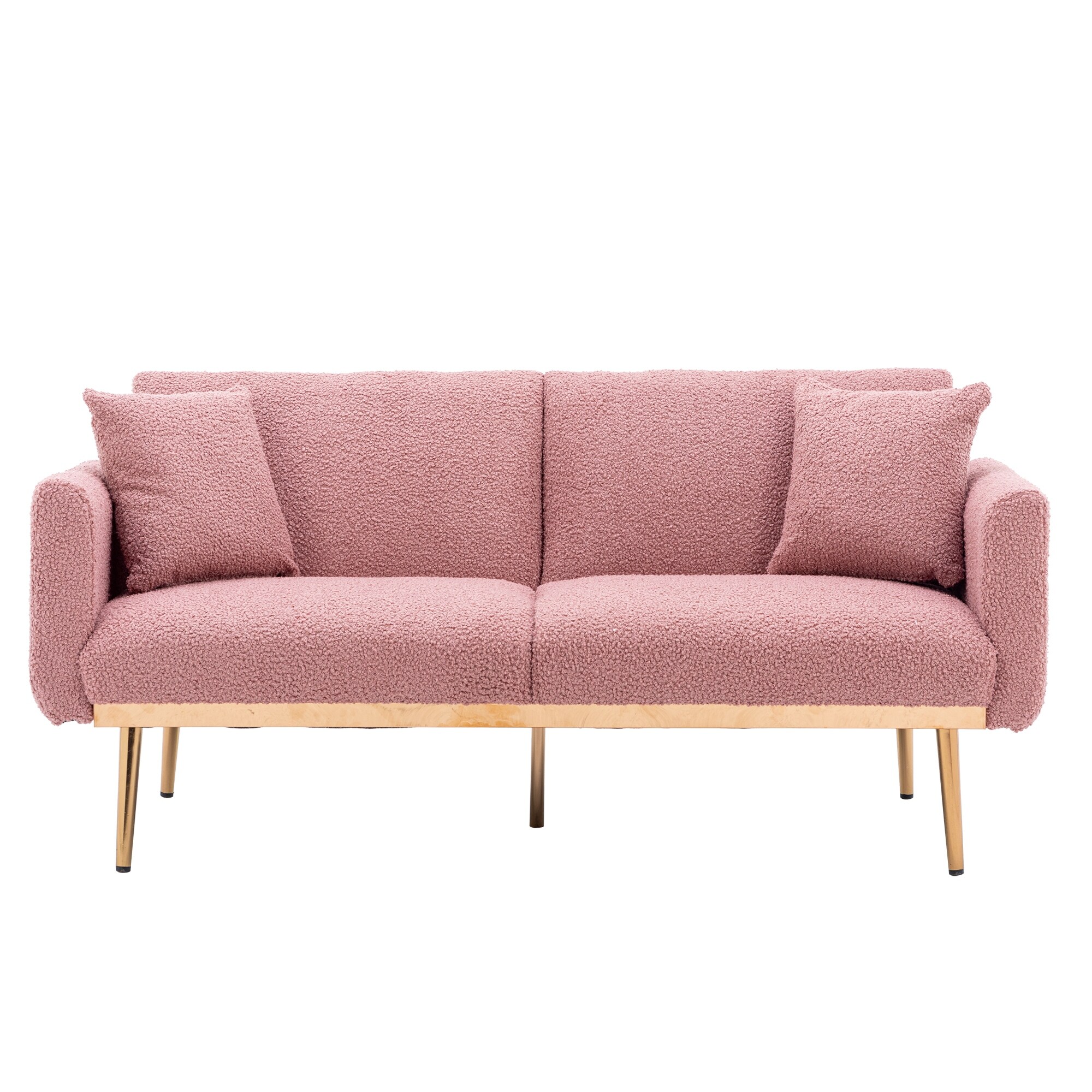 Velvet Sofa with 2 Pillows, Adjustable Split Back Accent Sofa, Folding Loveseat Sofa with Metal Feet