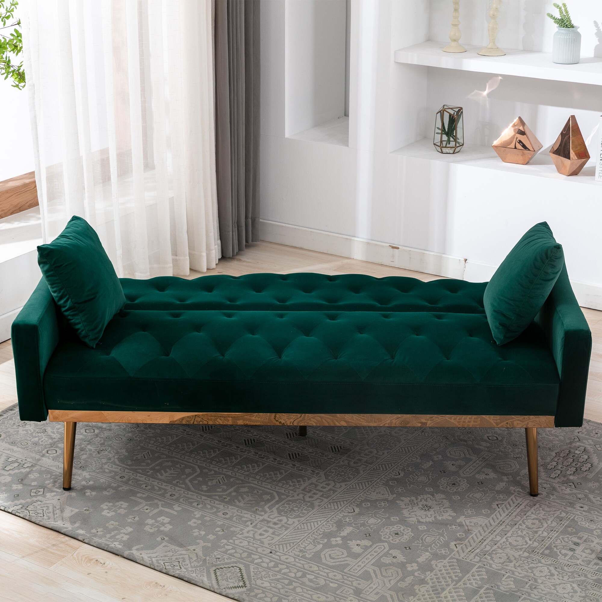 65.3" Loveseat Sofa Velvet Convertible Futon & Sofa Bed Comfort Upholstered Tufted Chaise Accent Sofa with Metal Feet Support
