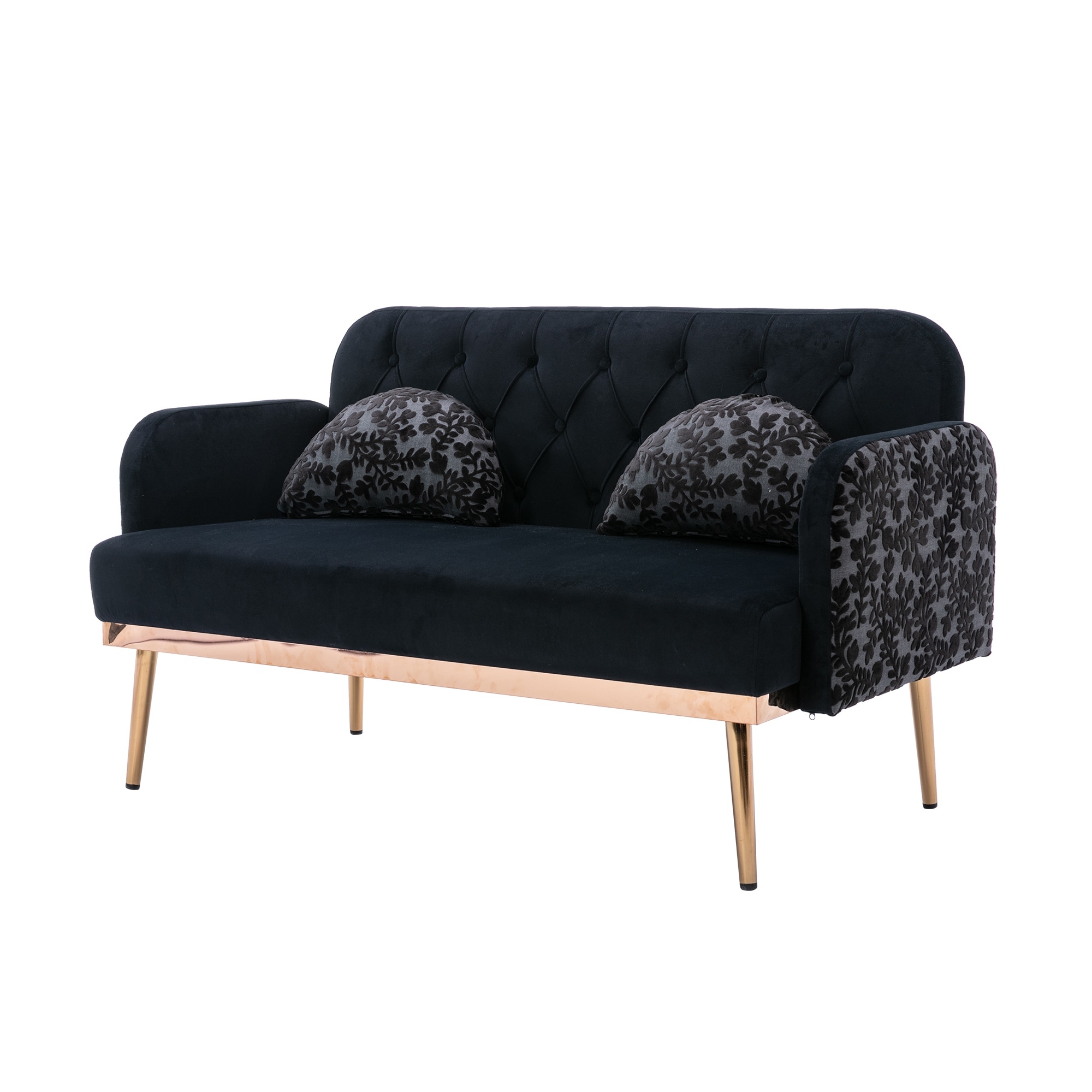 Tufted Cushions Velvet Sofa, Accent Sofa, Loveseat Sofa with Stainless Feet Black Velvet, Converted Into a Sofa Bed