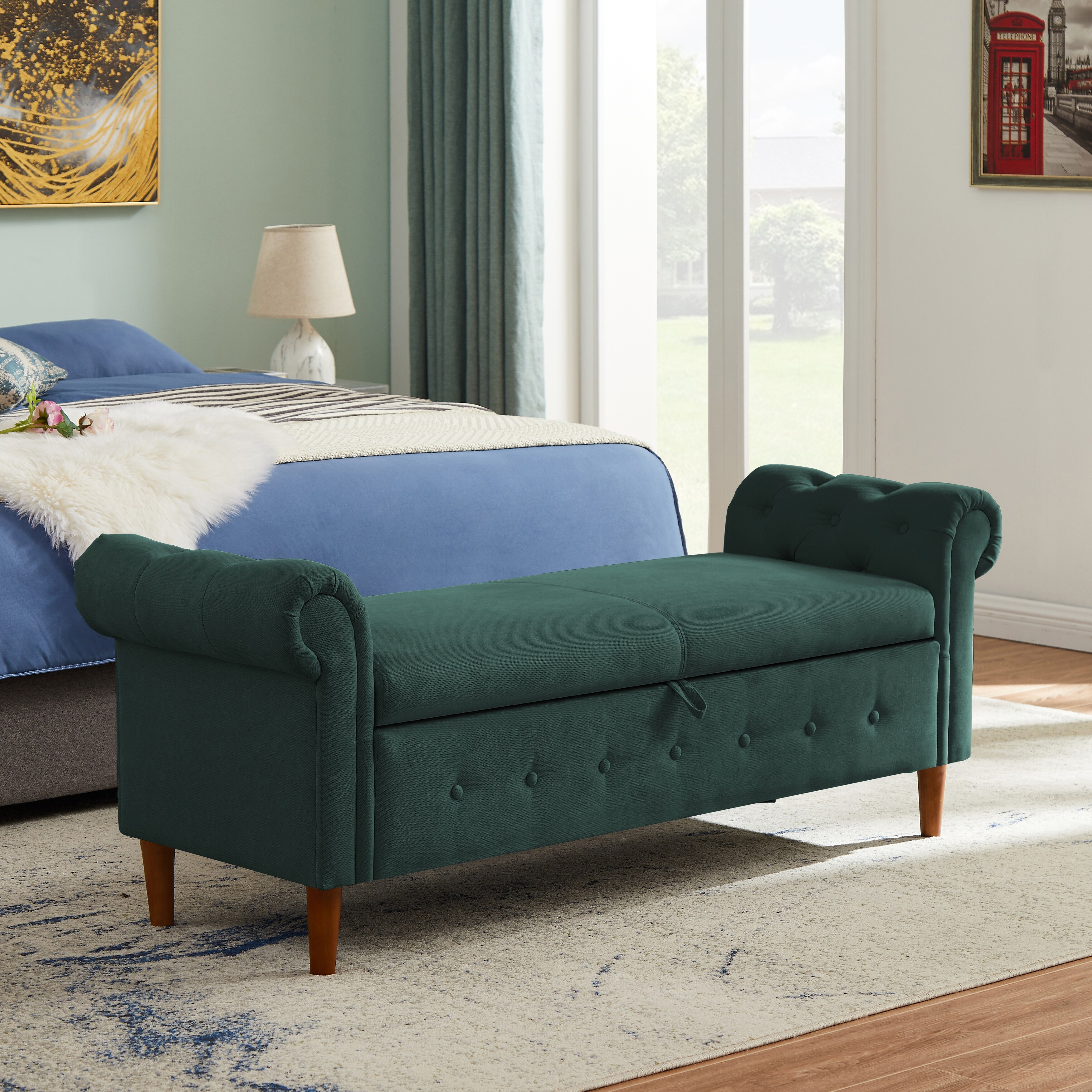 Multifunctional Storage Rectangular Sofa Stool, Solid Rubber Wood Feet