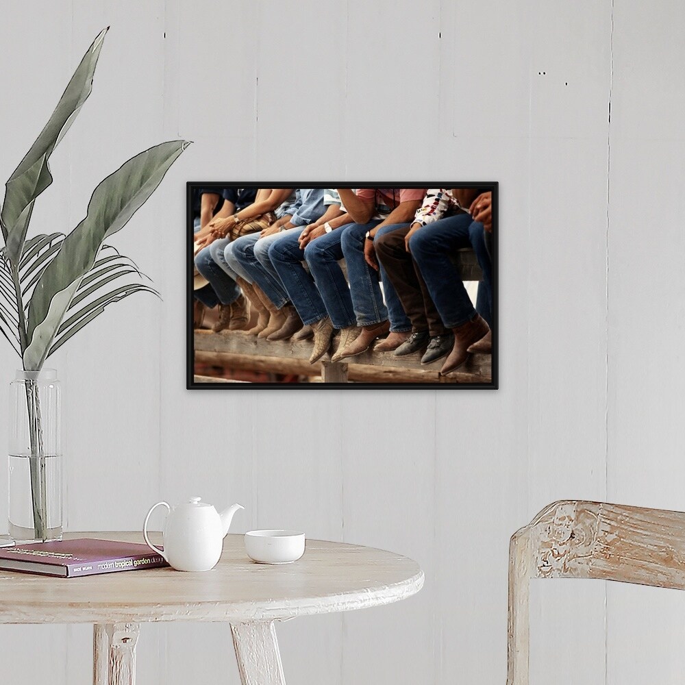 "Cowboys sitting on fence" Black Float Frame Canvas Art
