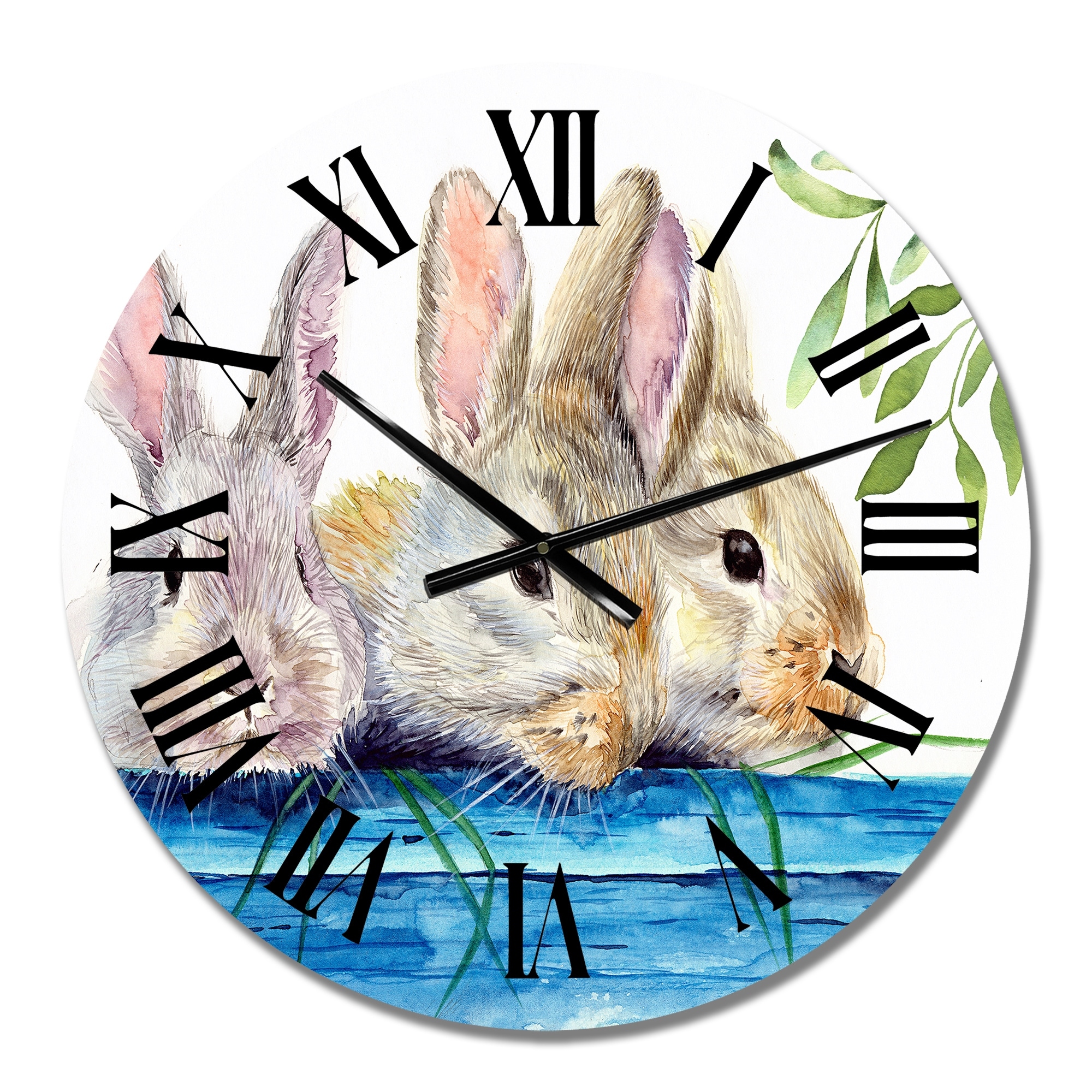 Designart 'Three Fluffy Rabbits Behind A Blue Wooden Fence' Traditional wall clock