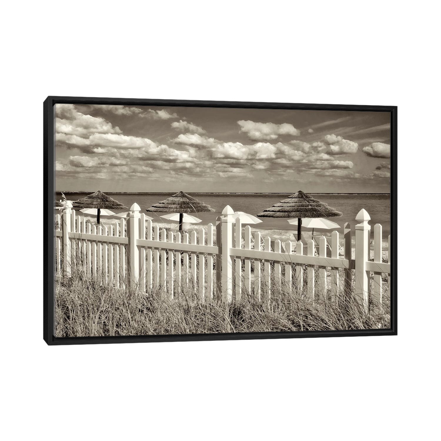 iCanvas "Fence And Umbrellas" by Dennis Frates Framed