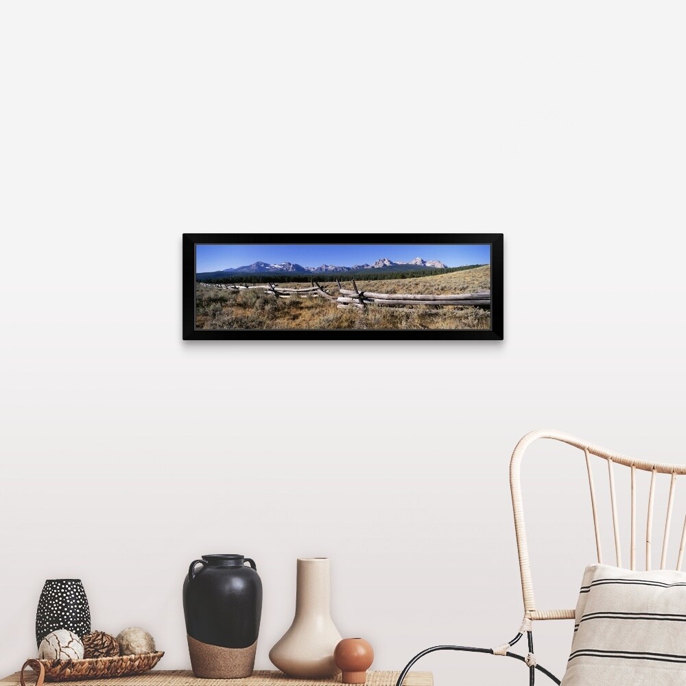 "Fence Sawtooth Mountains ID" Black Framed Print