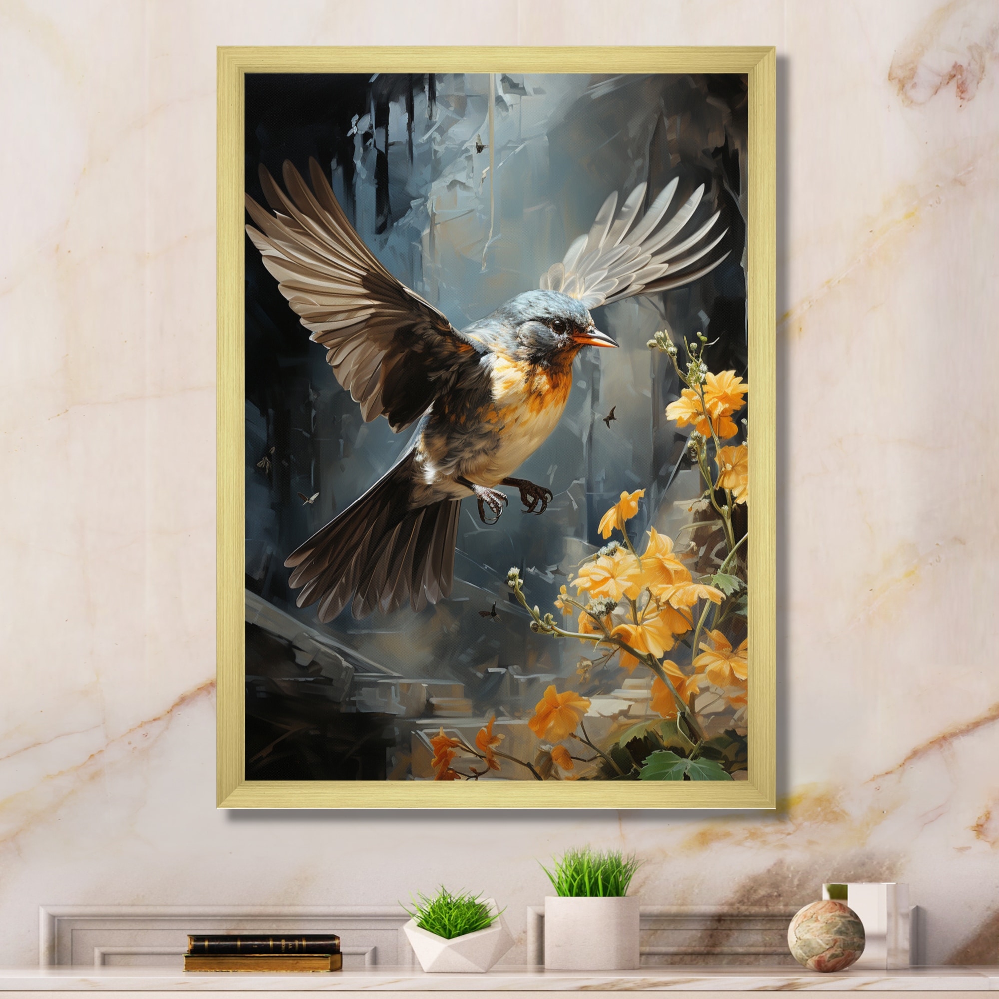 Designart "Bird Flight Through Shadows" Animals Bird Framed Canvas Print