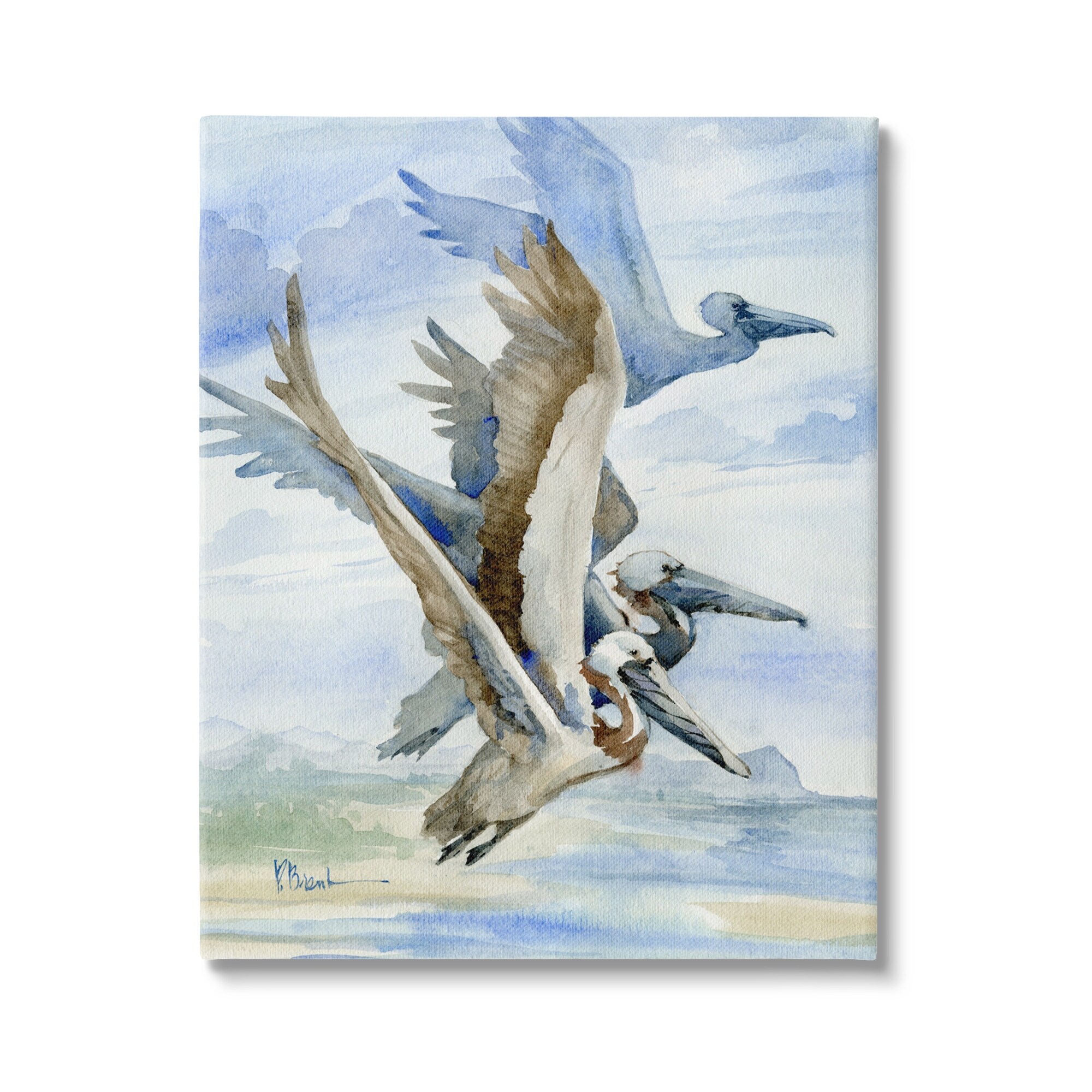 Stupell Industries Pelicans Aloft Bird Flight Trio Stretched Canvas Wall Art, Design by Paul Brent