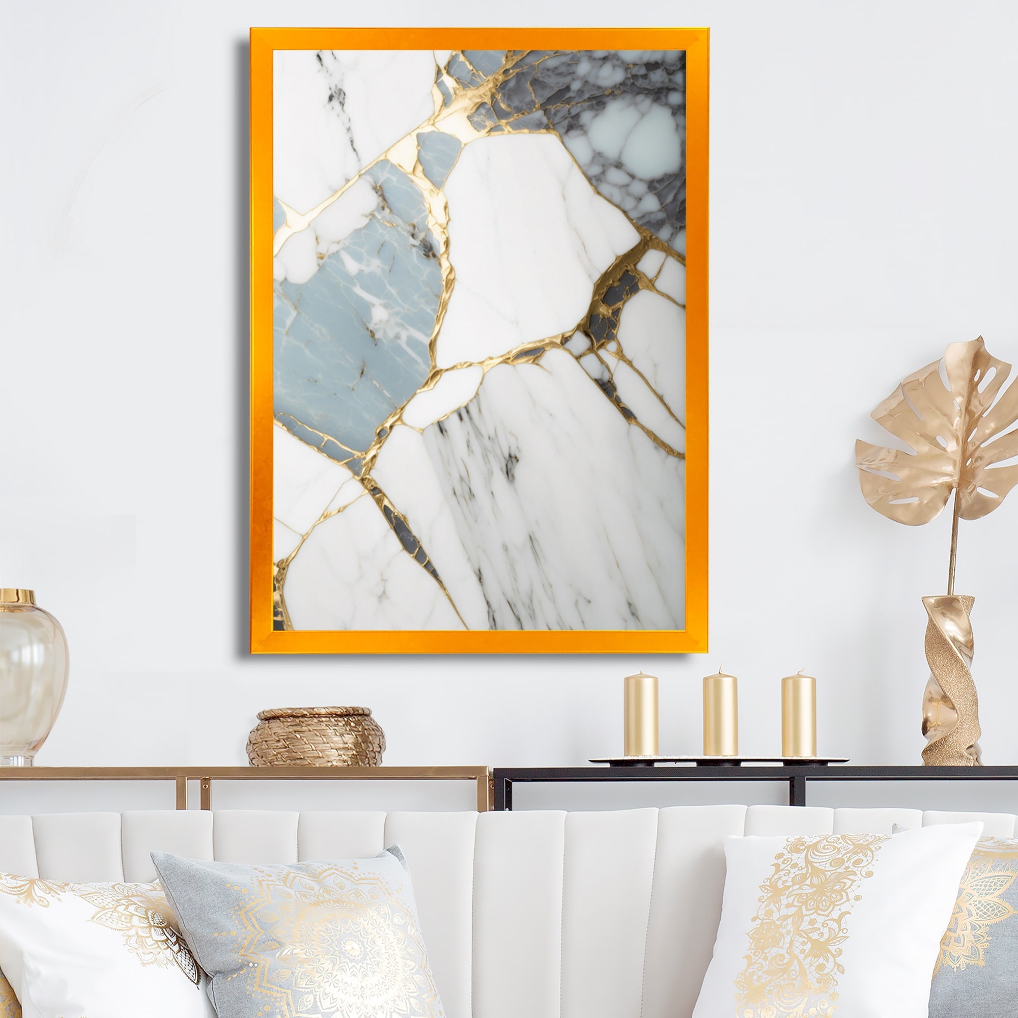 Designart "Abstract Geode Gold And White Marble I" Marble Abstract Framed Art Print