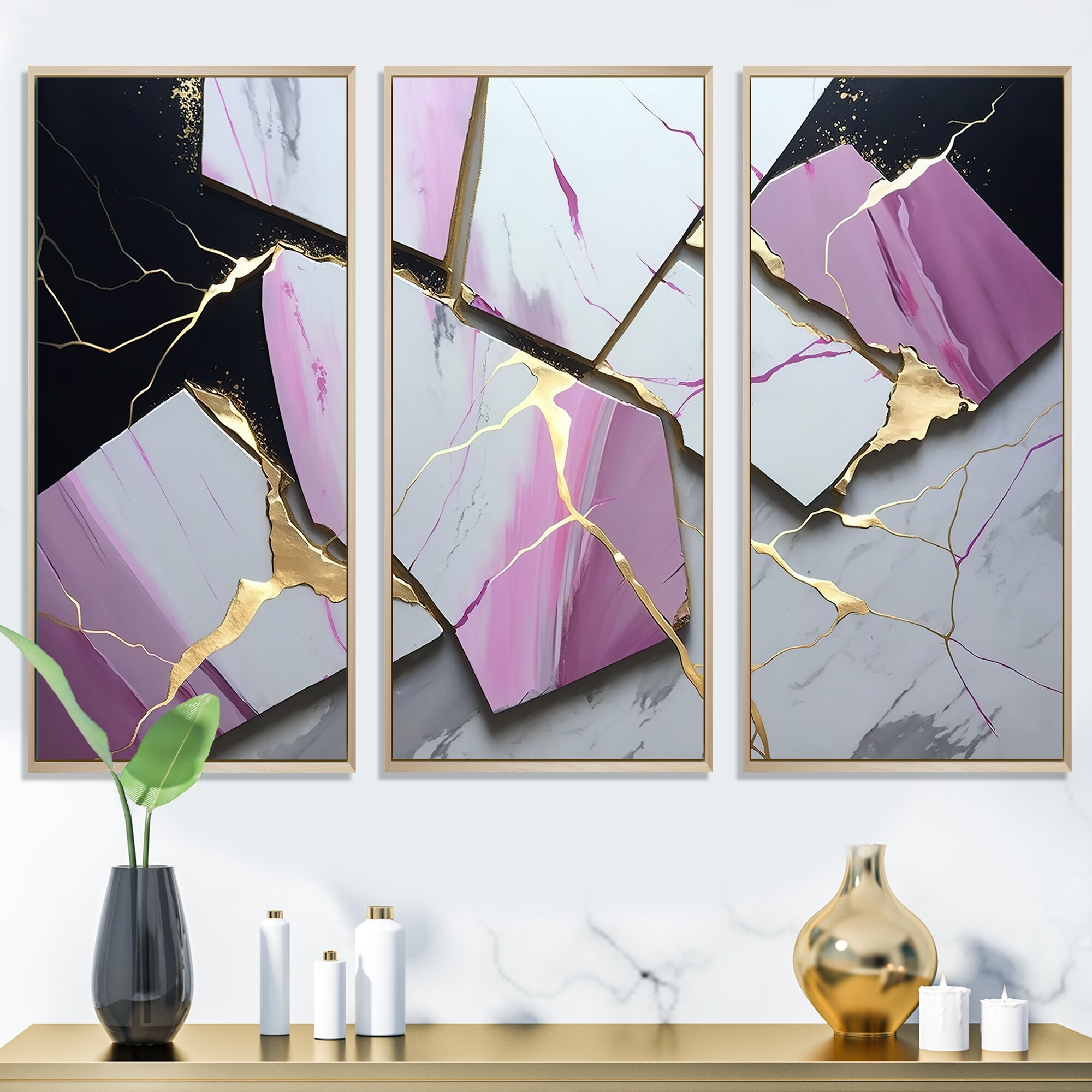 Designart "Abstract Geode Pink II" Abstract Marble Framed Canvas Art Print - 3 Panels