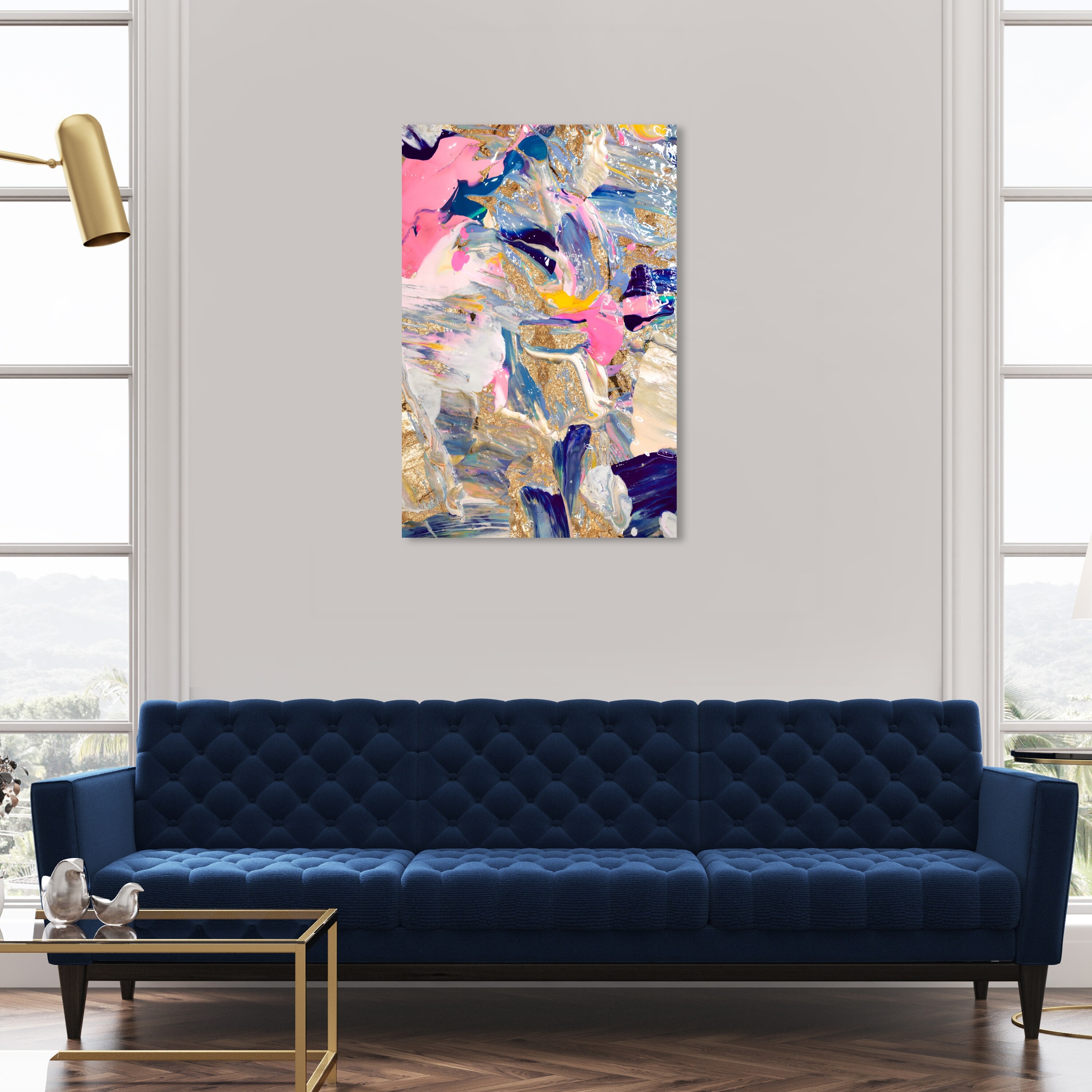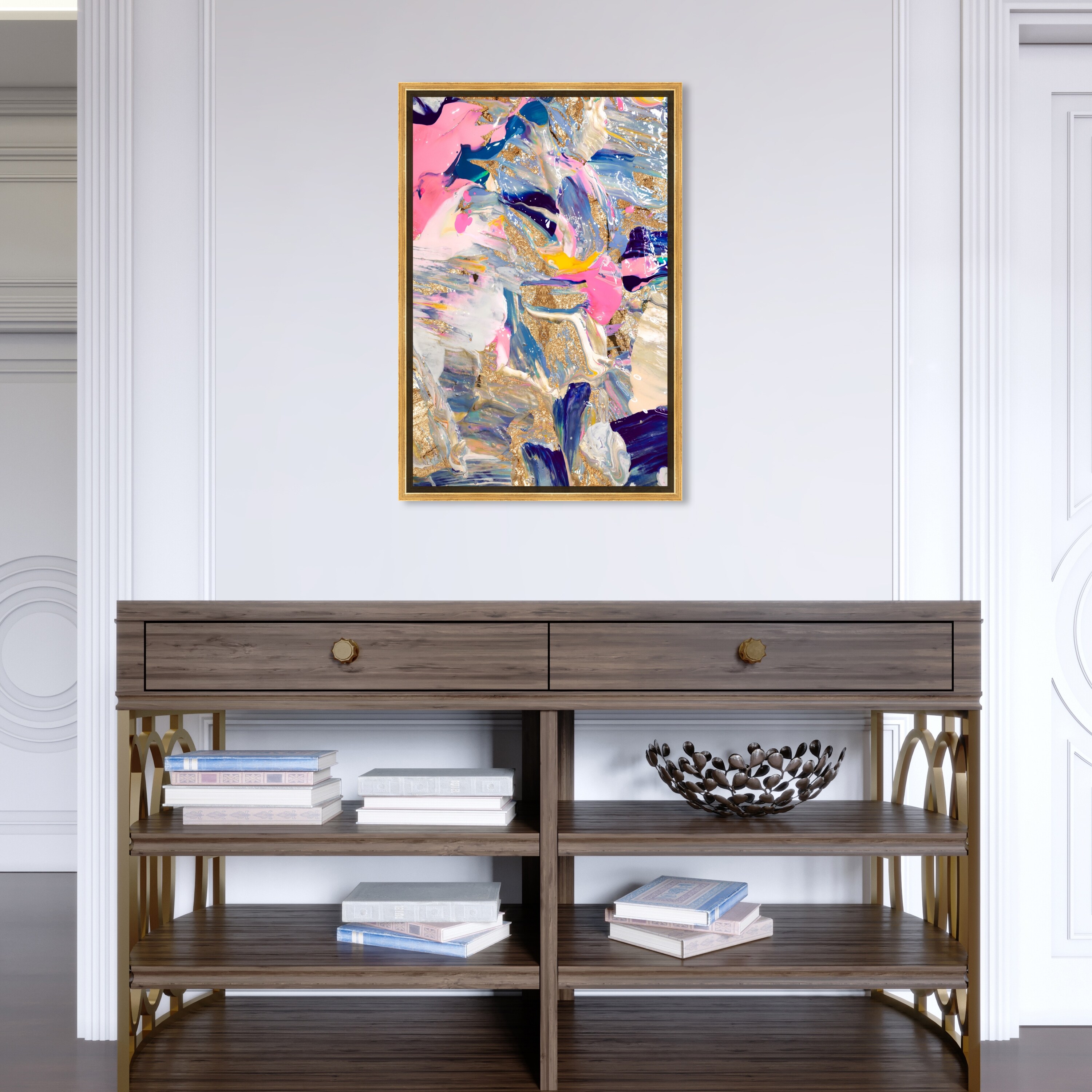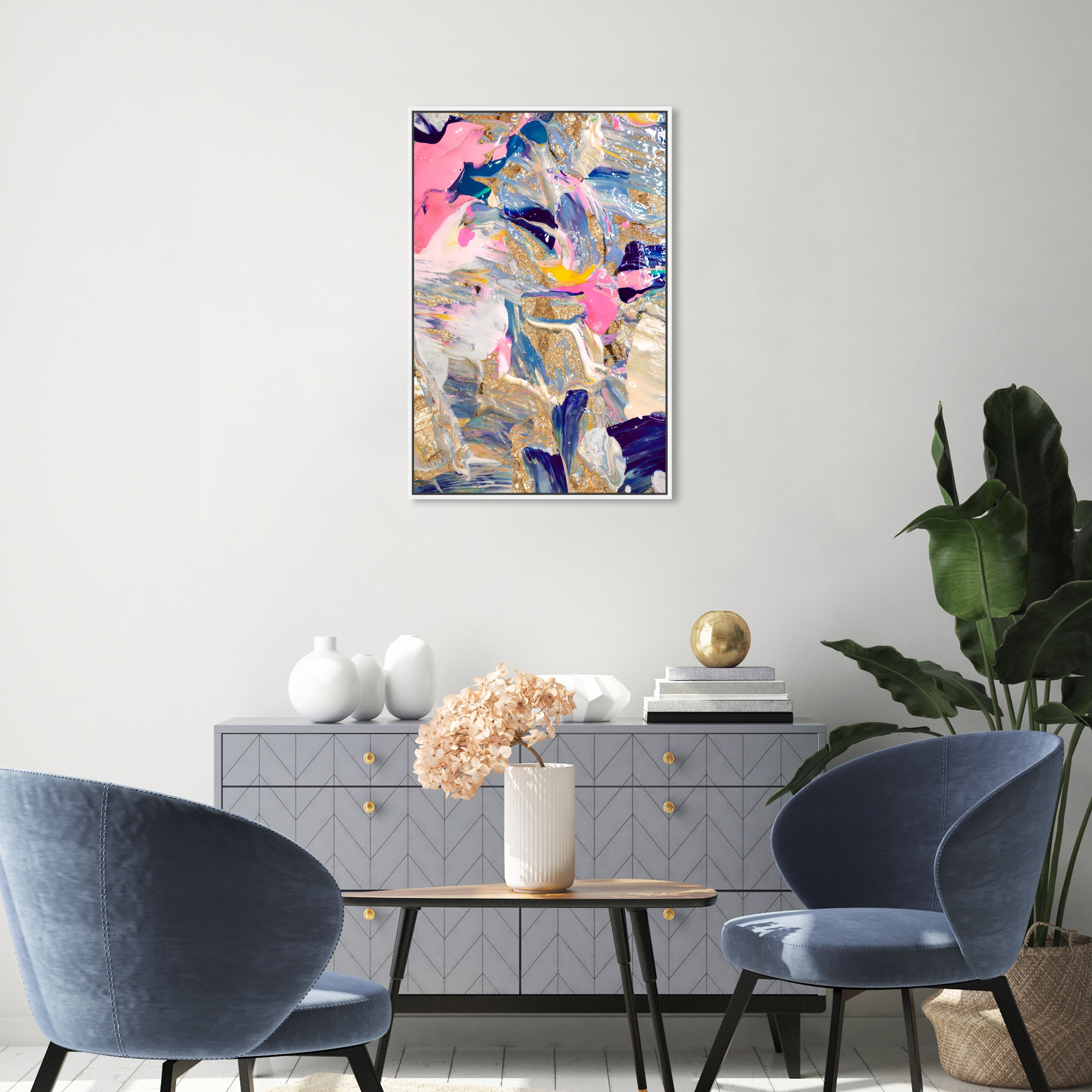 Oliver Gal 'Getting To Know You Gold' Abstract Wall Art Framed Canvas Print Textures - Gold, Blue