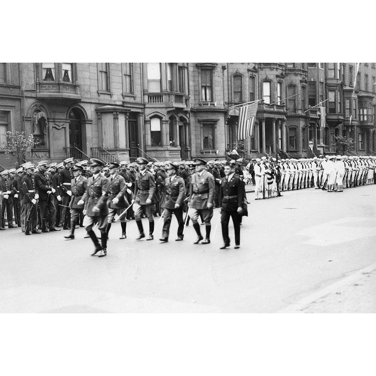 Head of Boston Tercentenary Parade getting under way Black and White Gallery Wrapped Canvas