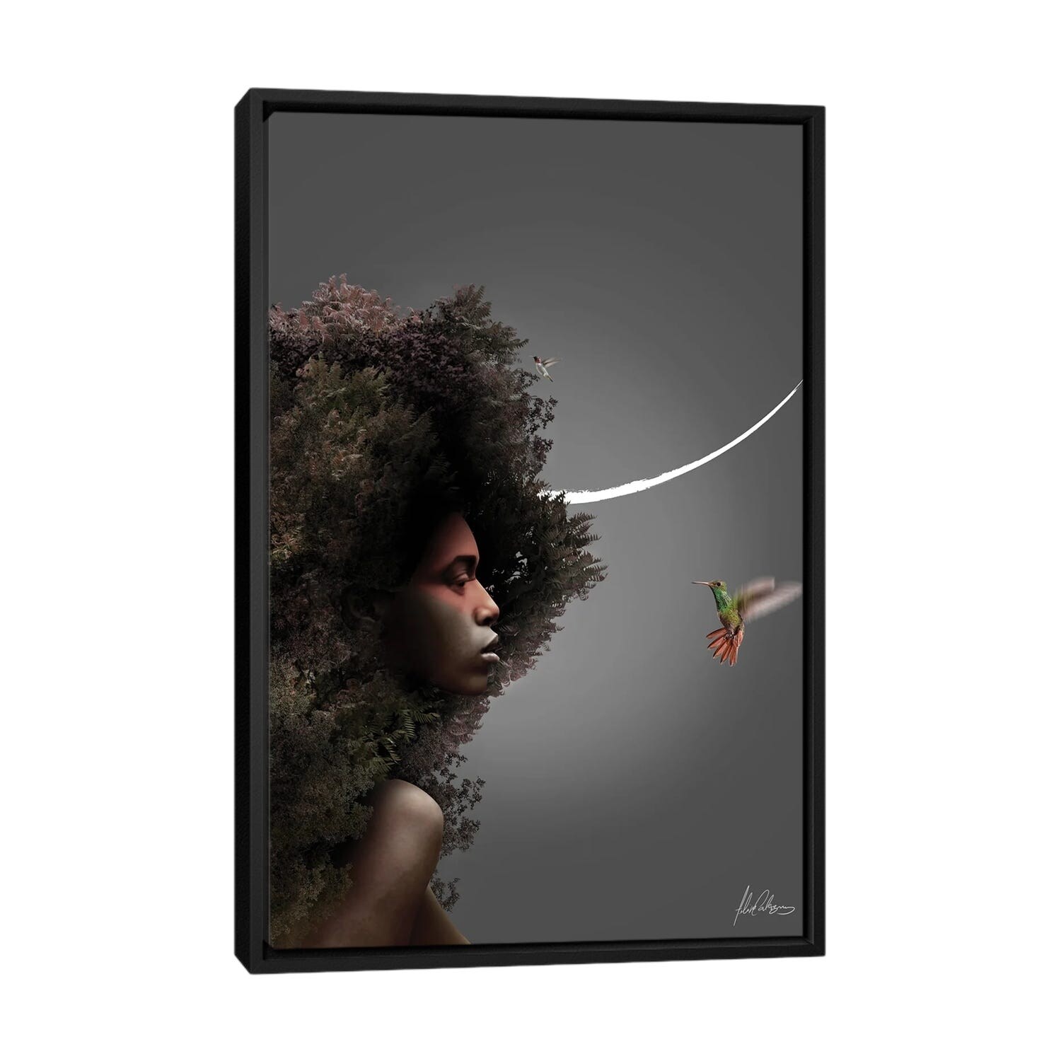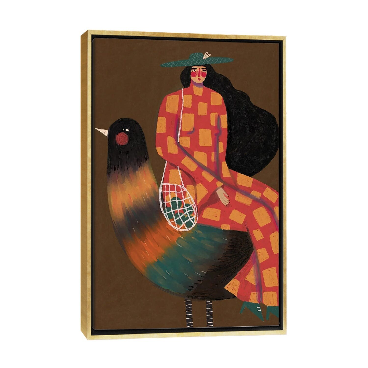 iCanvas "Girl On Bird" by Renee Melia Framed|Black - 26x18
